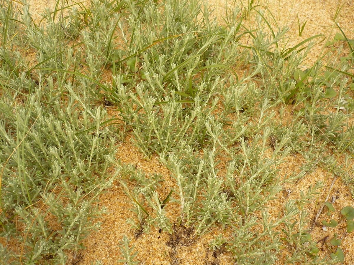 Ch – 1-3 dm – Touffue parfumée, feuilles (L 1-2 cm) cendrées spatulées linéaires – Capitules ± globuleux (Ø 4-5 mm) en petites têtes terminales denses, fleurons jaunes, bractées scarieuses