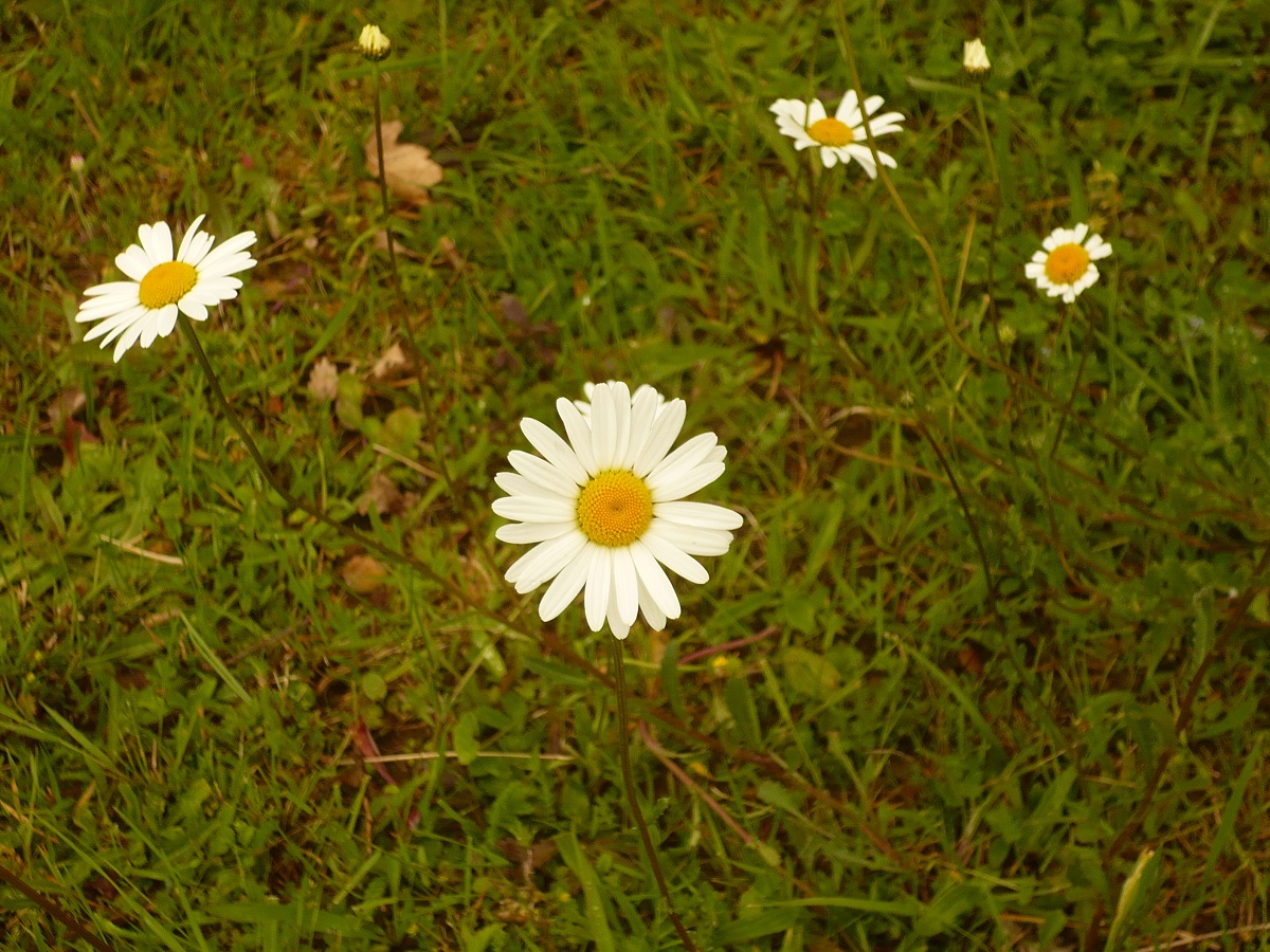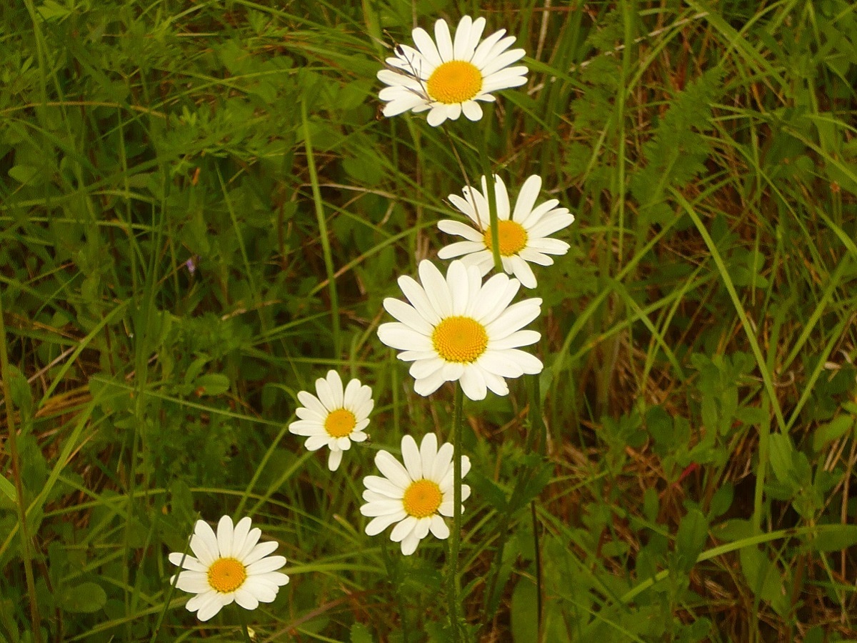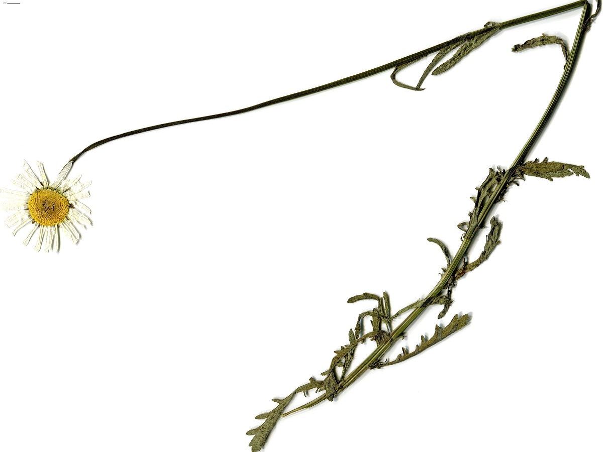 Hc – 3-6 dm – Dressée, feuilles médianes obovales oblongues dentées à lobes basaux longs – Capitules (Ø 4-5 cm), disque jaune, hémiligules blanches, bractées (L ≃ 6 mm) à marge brunâtre