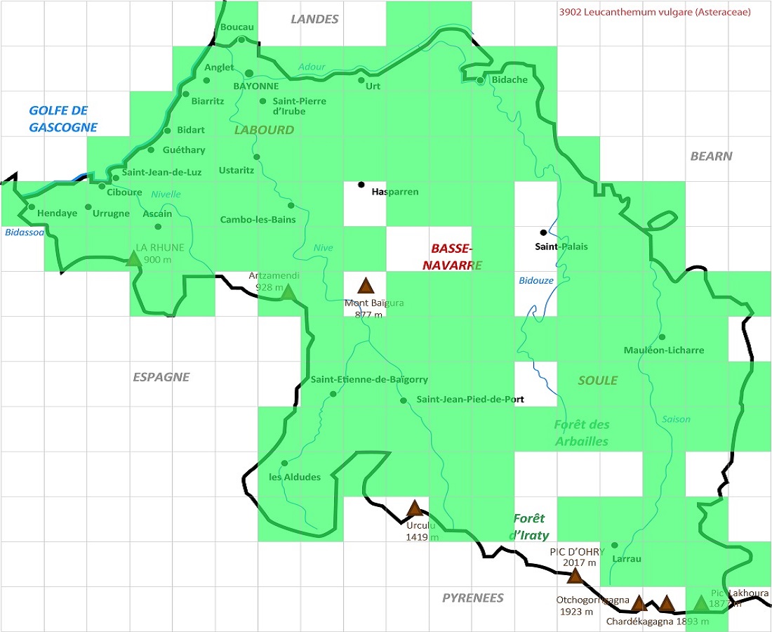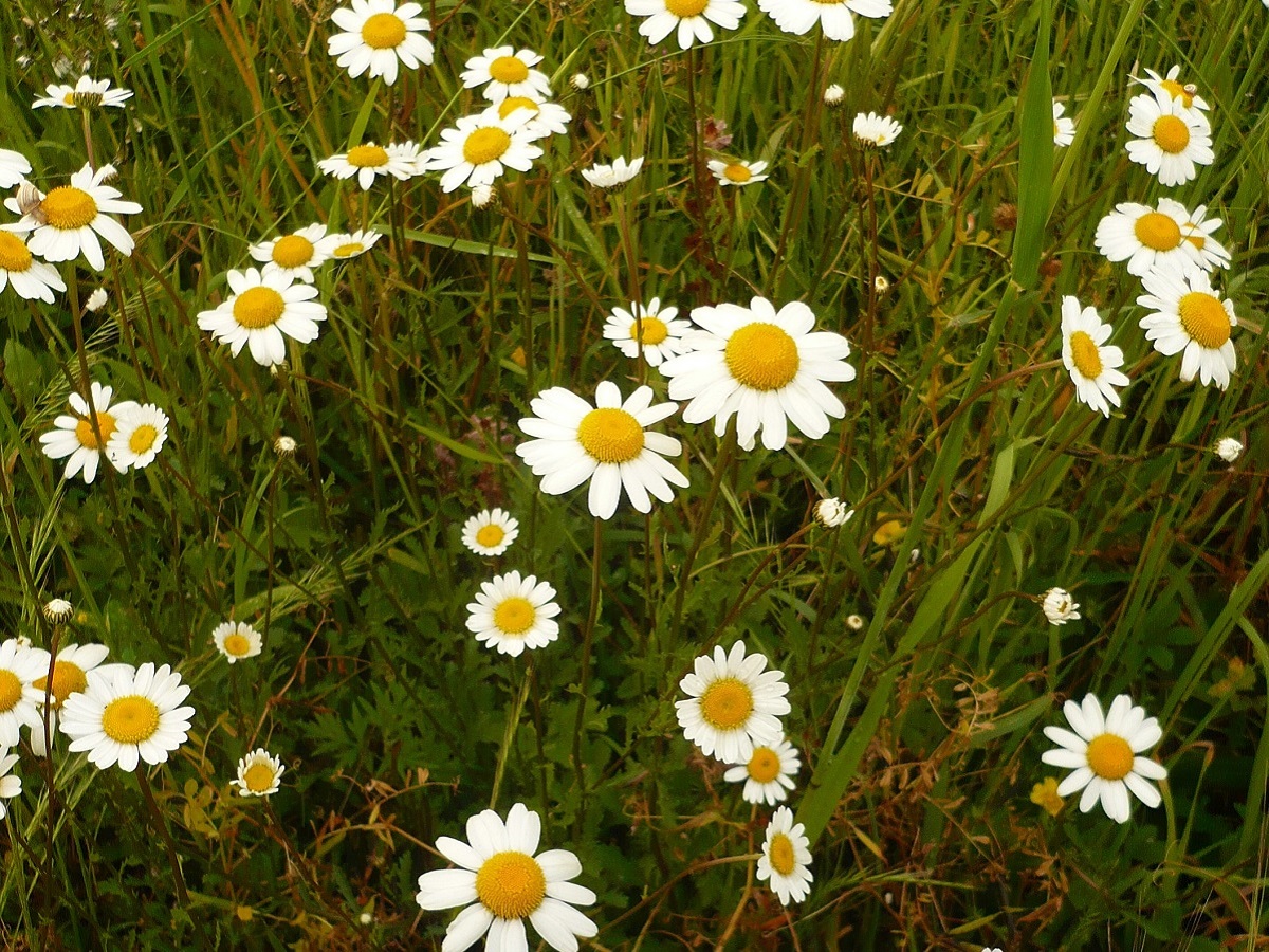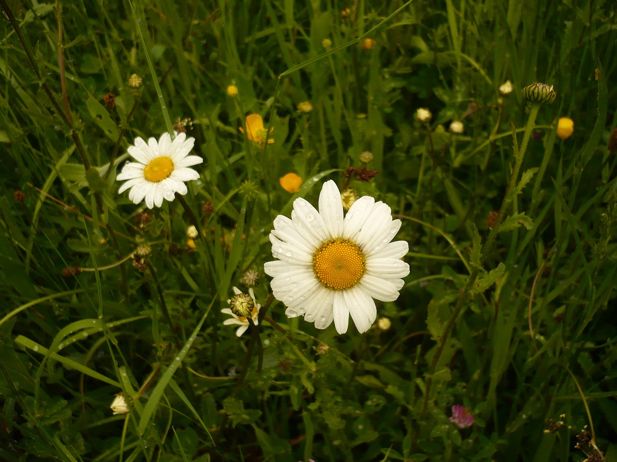 Hc – 3-6 dm – Dressée, feuilles médianes obovales oblongues dentées à lobes basaux longs – Capitules (Ø 4-5 cm), disque jaune, hémiligules blanches, bractées (L ≃ 6 mm) à marge brunâtre