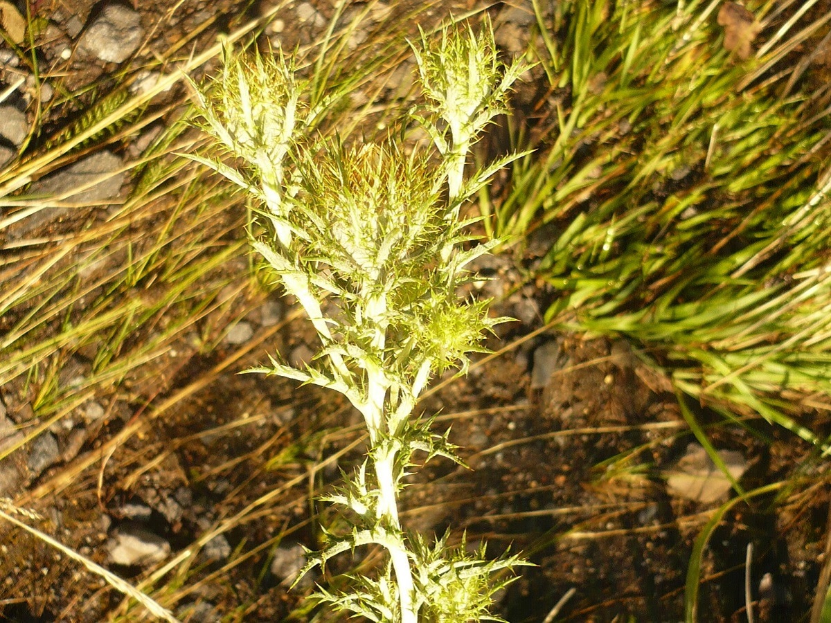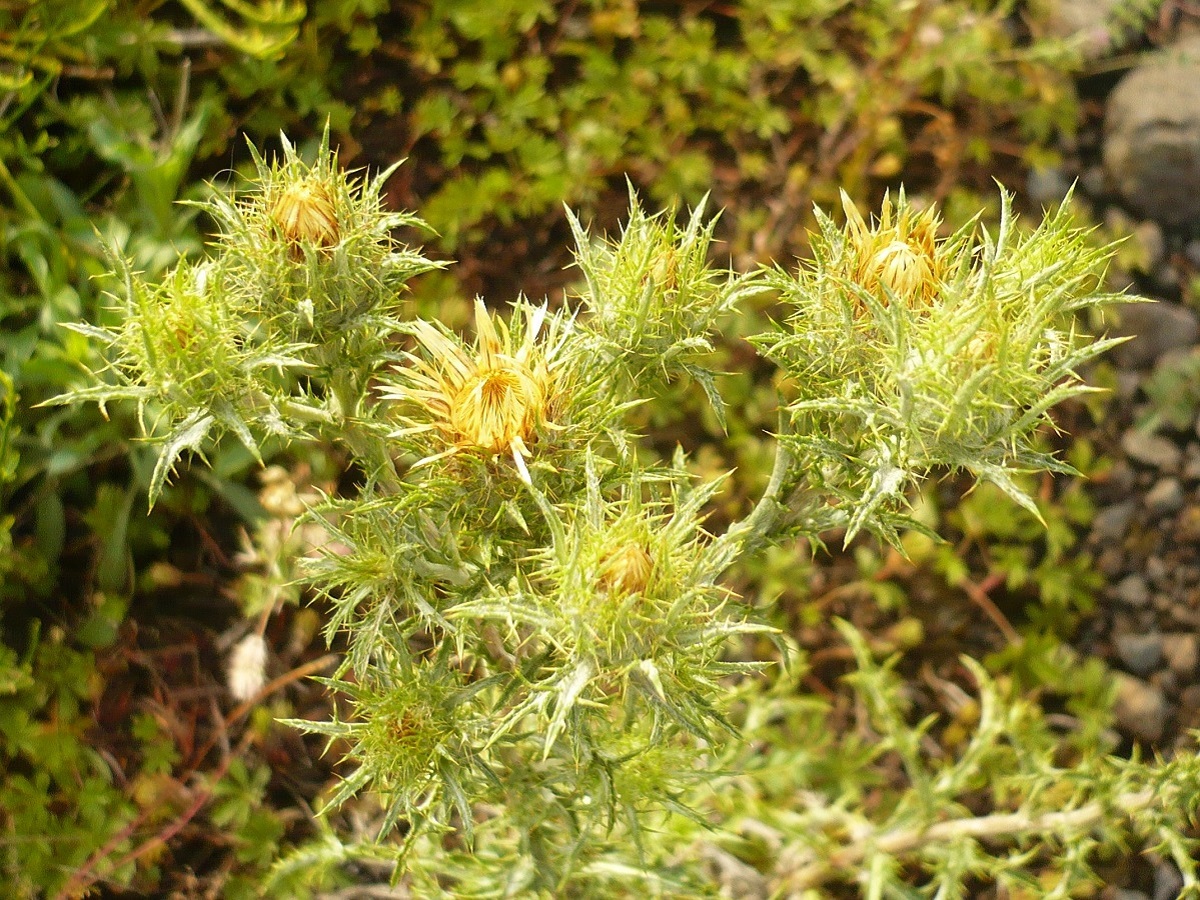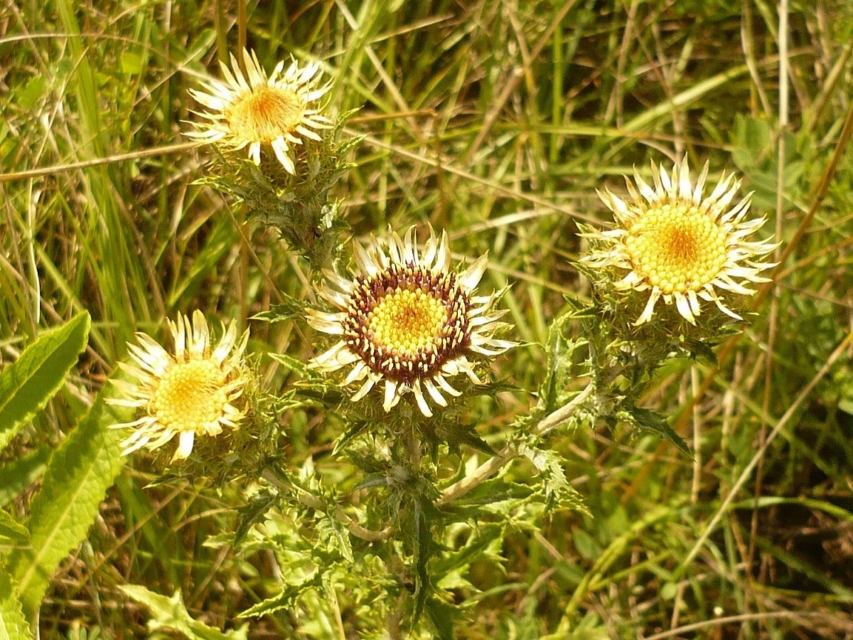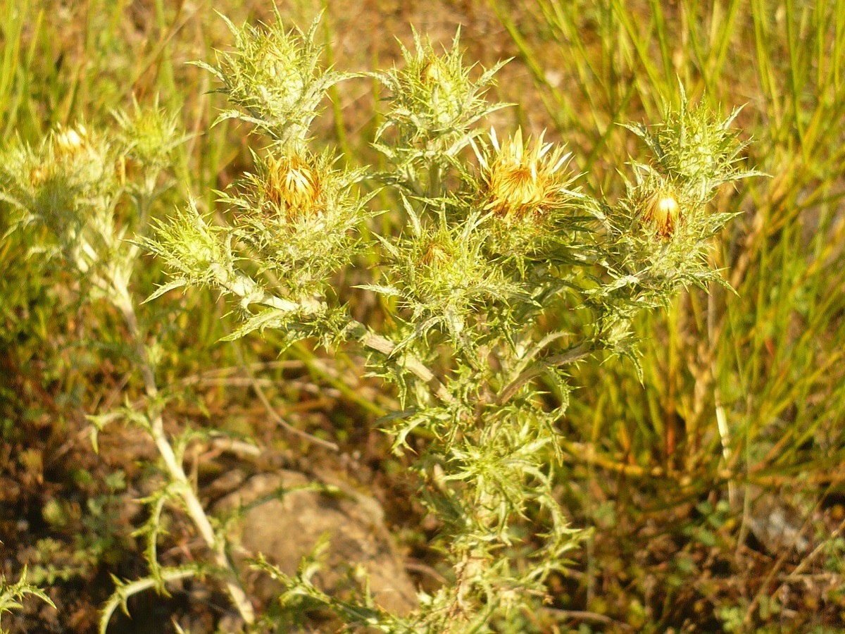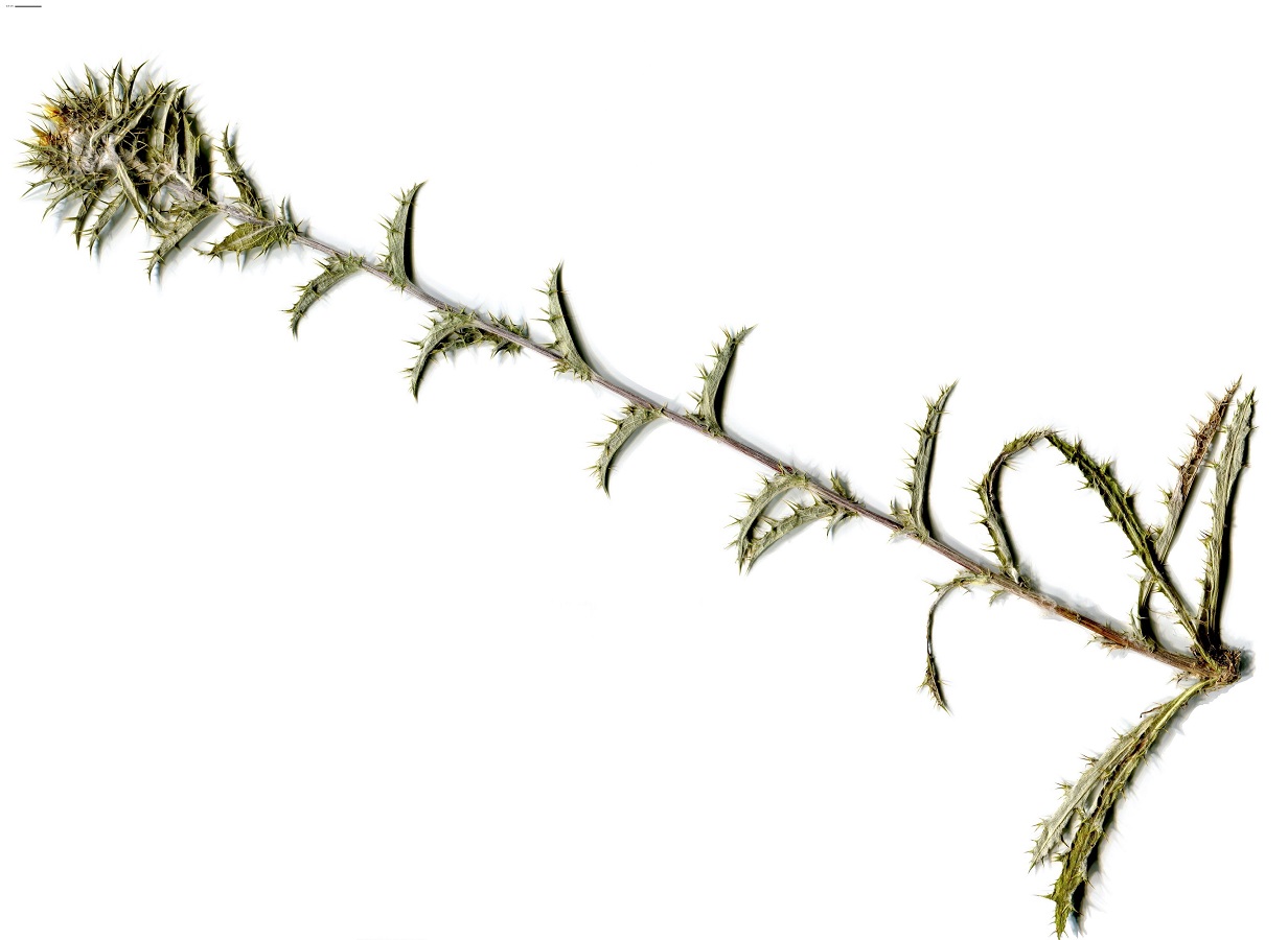 Hc – 2-4 dm – Dressée, feuilles ondulées à lobes étroits aigus très épineux – Capitules de Ø 2-3 cm, fleurons jaunâtres, bractées internes de l ≃ 1 mm jaune pâle > aux externes épineuses