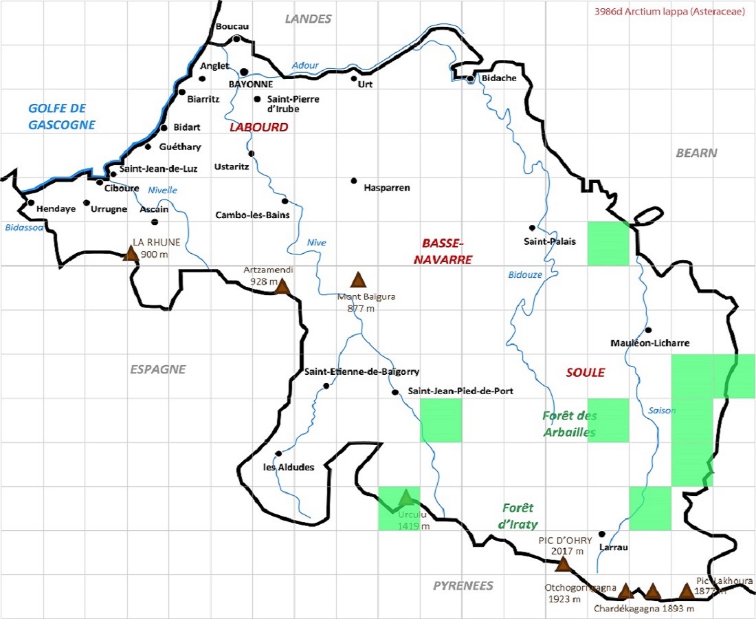 Rare – Été – Ourlets, friches nitrophiles, ripisylves – Localisée, en Soule et Basse-Navarre, rare ou absente ailleurs, au Pays Basque