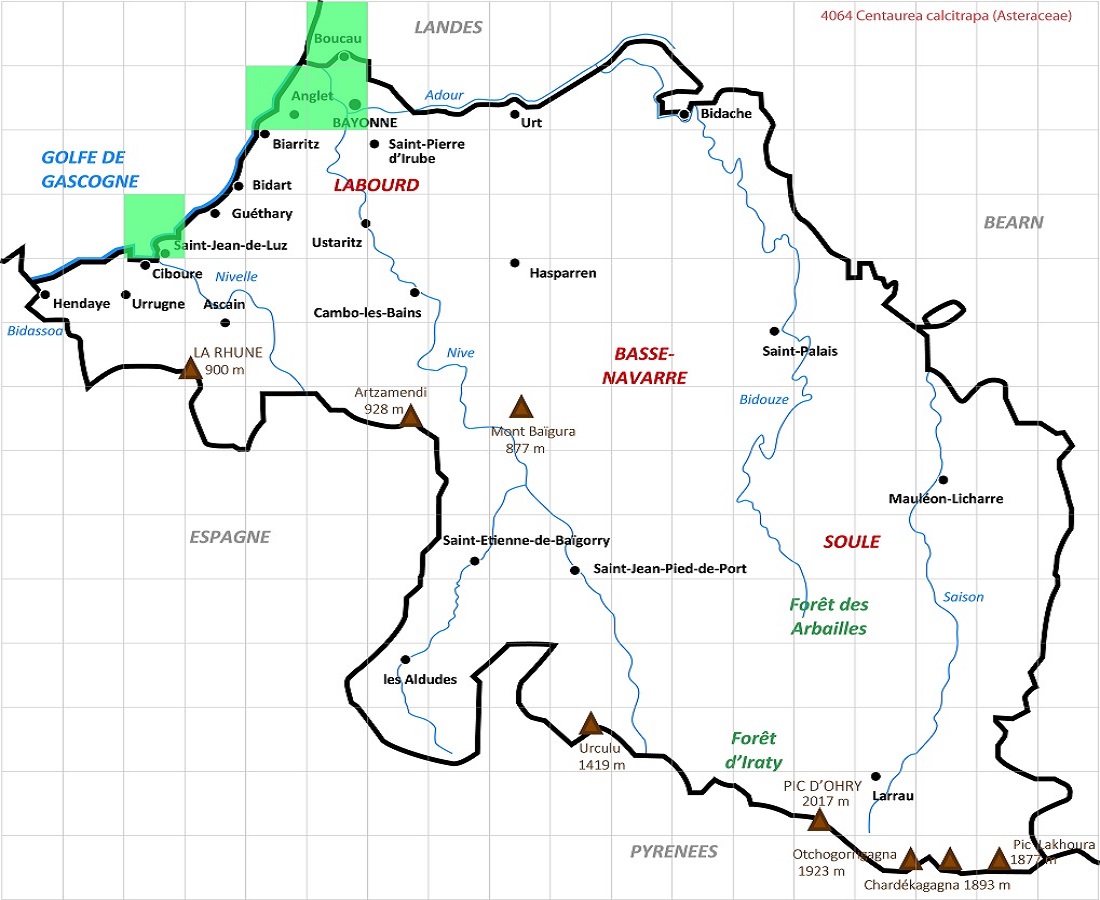Hc – 3-6 dm – Plante diffuse, feuilles pennées à segments lancéolés étroits – Fleurons pourpres ~ égaux, involucre de Ø 0,5-1 cm, appendices des bractées à forte épine étalée L de 1-1,8 cm