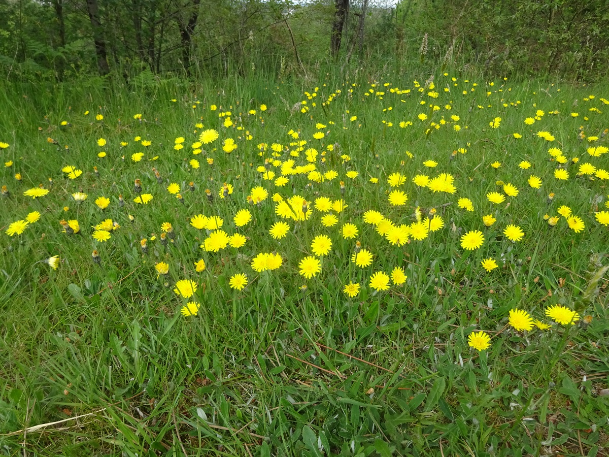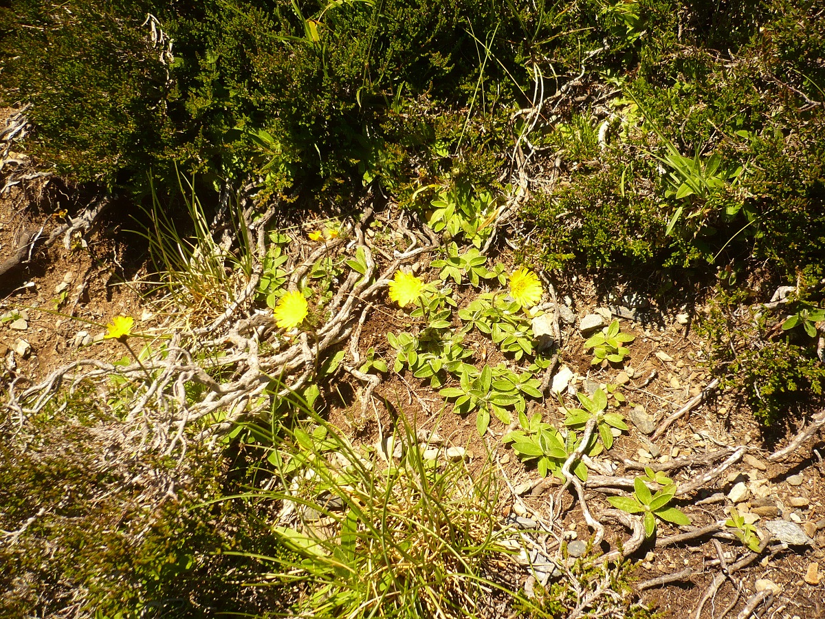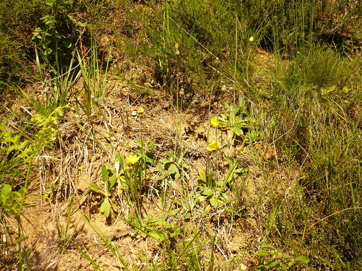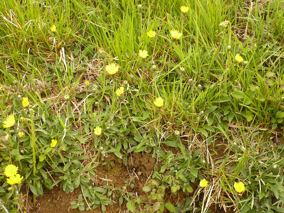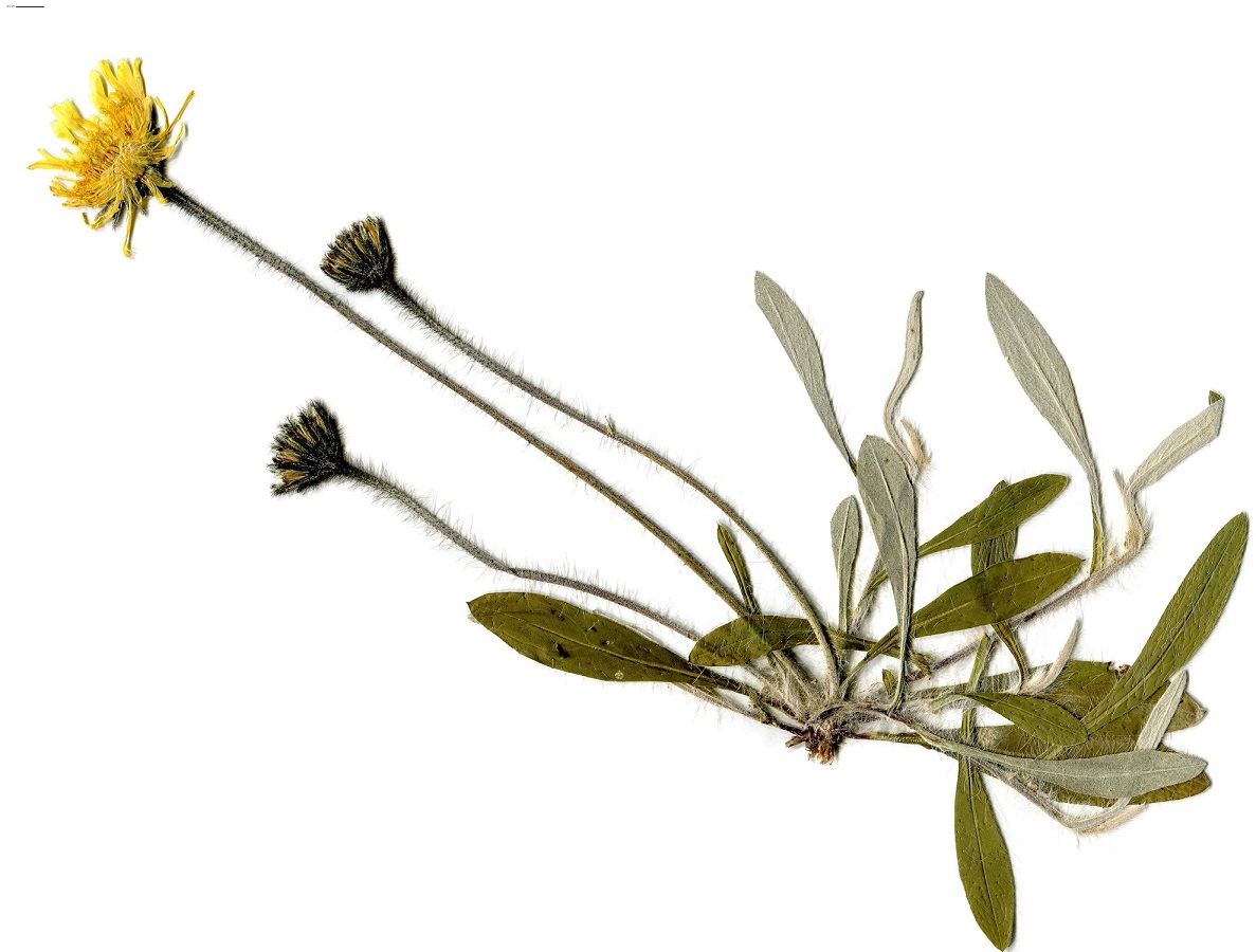 Hc – 1-3 dm – Feuilles obovales à longs poils, les basales et celles des stolons ~ égales – Capitule de Ø 2-3 cm, à ligules jaunes, bractées de l ≃ 2 mm et long pédoncule glanduleux foncés
