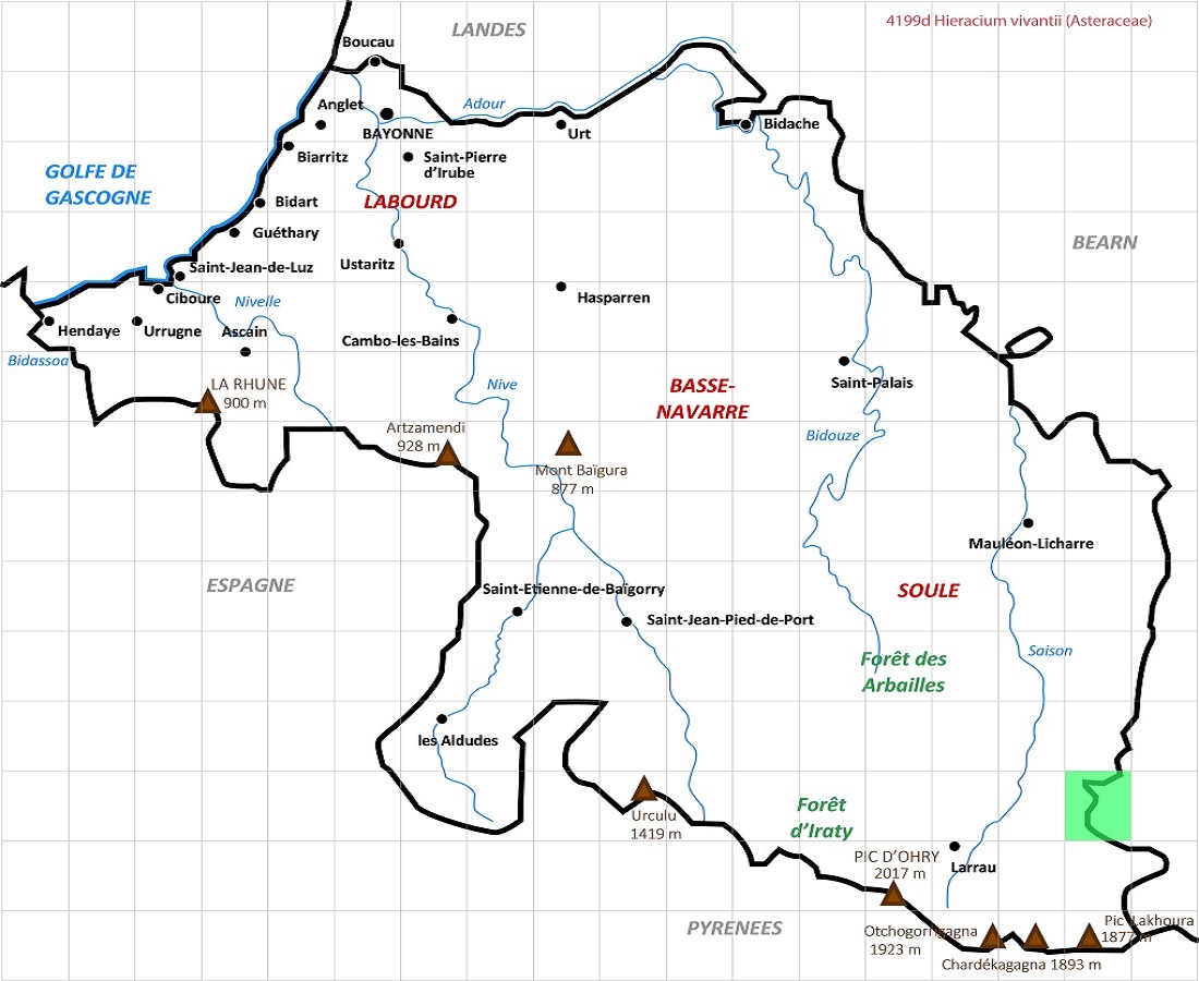 Nom Latin du taxon (Famille) Hieracium vivantii (Asteraceae) - Synonymes Latins – (Syn. Hieracium obovatum**) Nom Français du taxon Épervière de Vivant - Autres Noms Français - nc Nom en Euskara nc - Autres Noms en Euskara - nc Identifiant 4199d