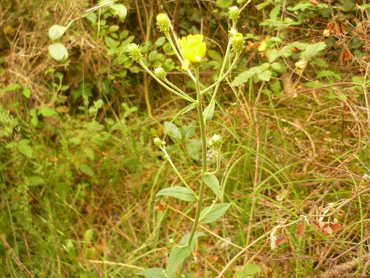 Hc/G à rhizome – 5-12 dm – Feuilles caulinaires par 10-50 ± larges lancéolées aiguës dentées – Capitules de Ø ≃ 3 cm en panicule lâche, ligules jaunes, styles obscurs, bractées glabres