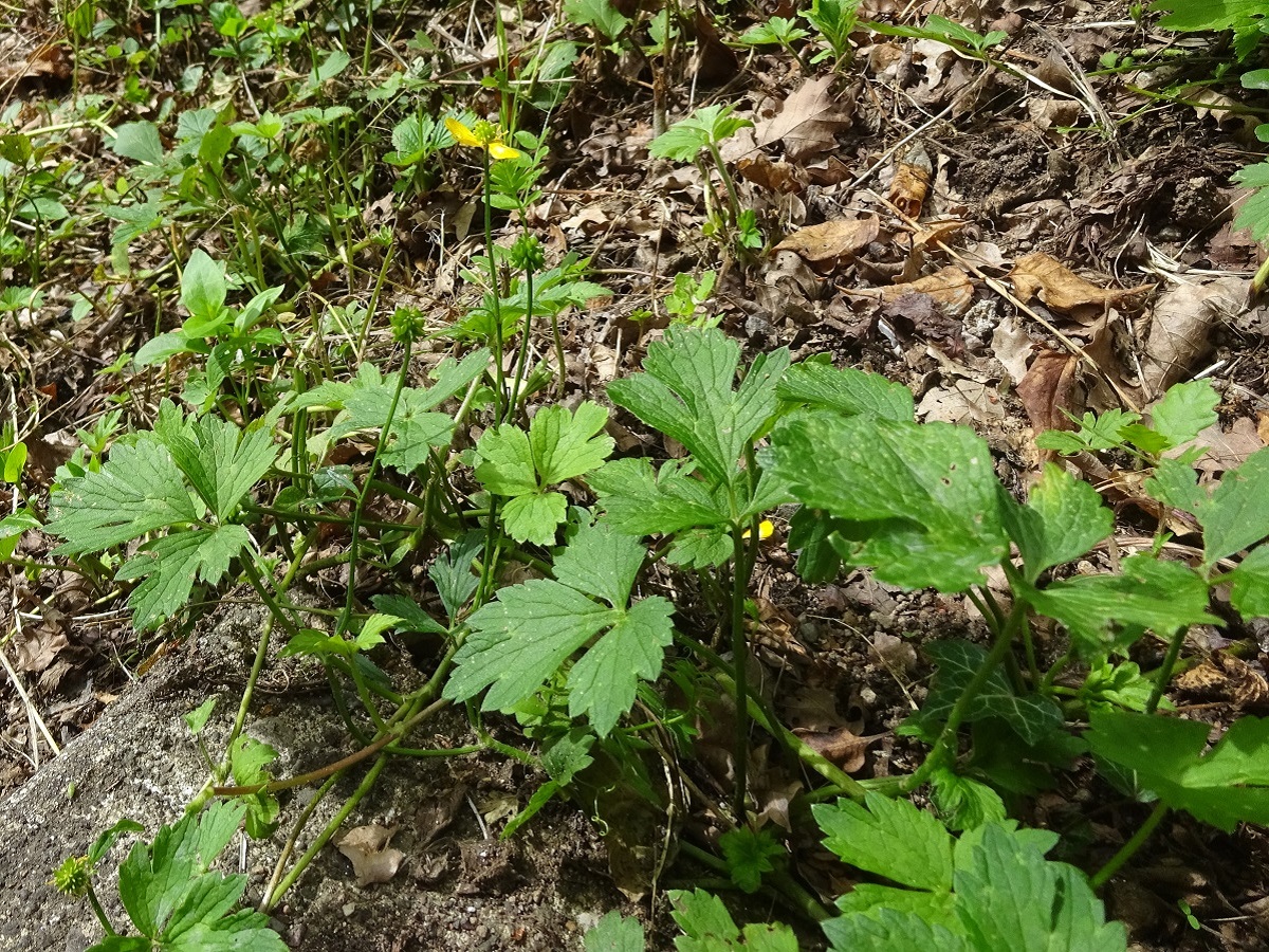 Hc – 2-6 dm – Tige rampante s'enracinant, feuilles ± velues triséquées, incisées-dentées, les > lancéolées – Fleurs à 5 pétales jaunes > aux sépales, pédicelles striés – Akènes à bec droit