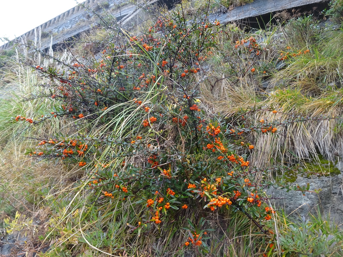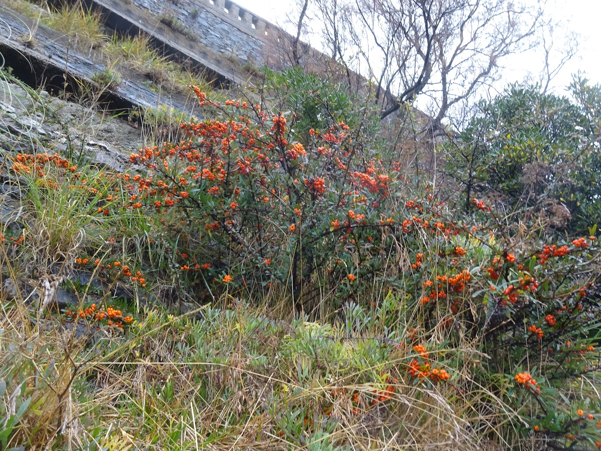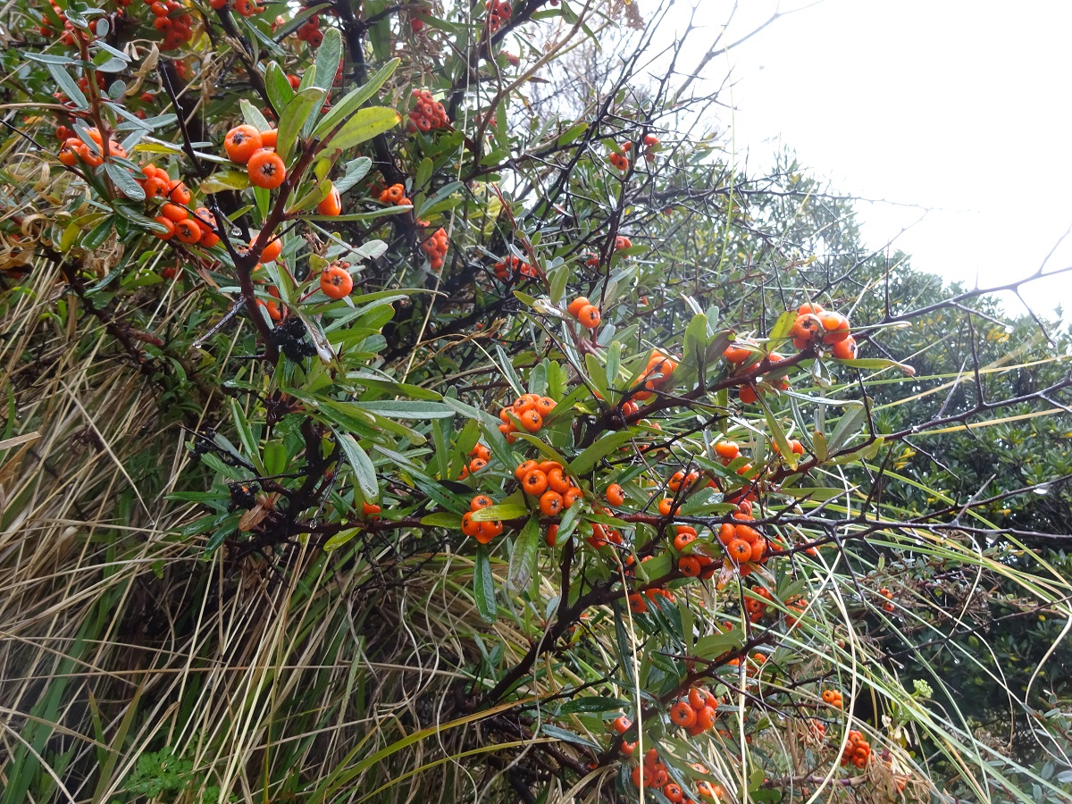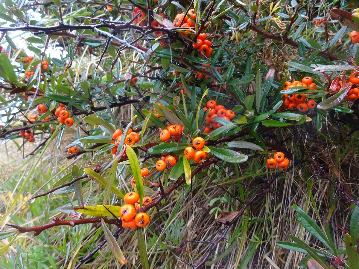 NPh – 1-1,5 m – Épineux, feuilles (L 3-5 cm) étroites lancéolées, entières, mucronées, persistantes – Corymbes fournis de fleurs blanches – « Fruits » (Ø 5-7 mm) globuleux, orangé écarlate