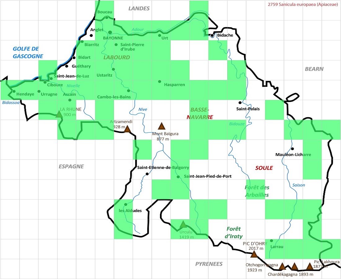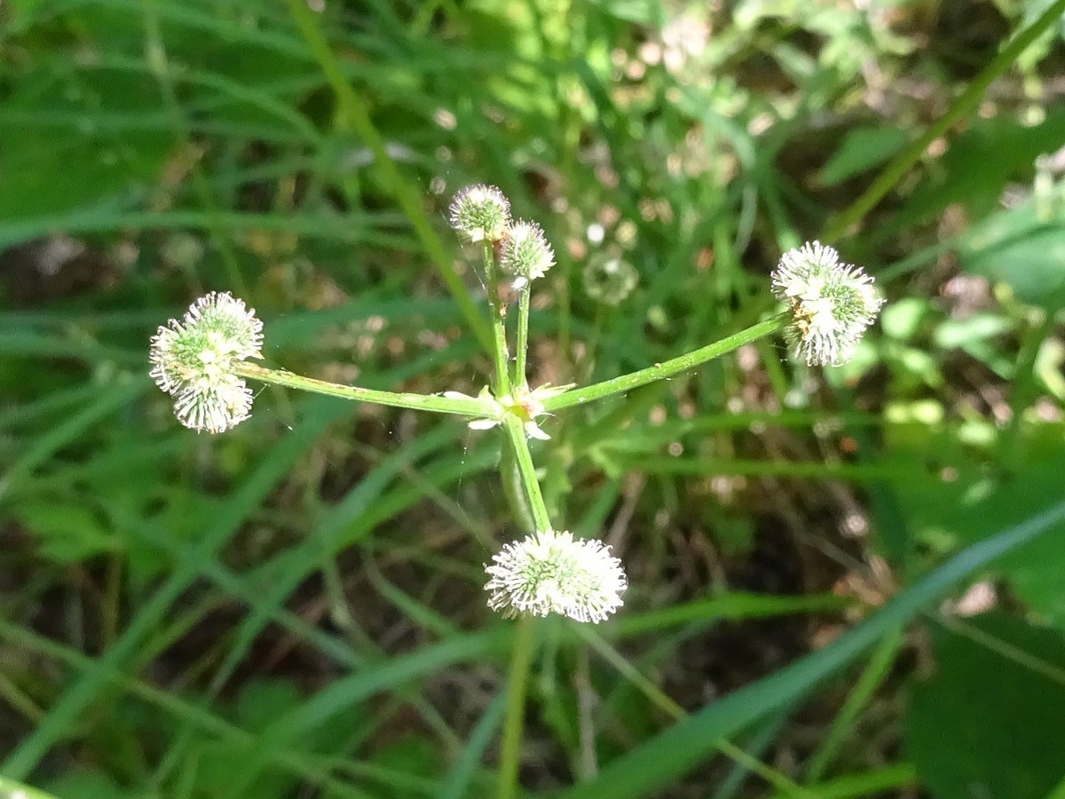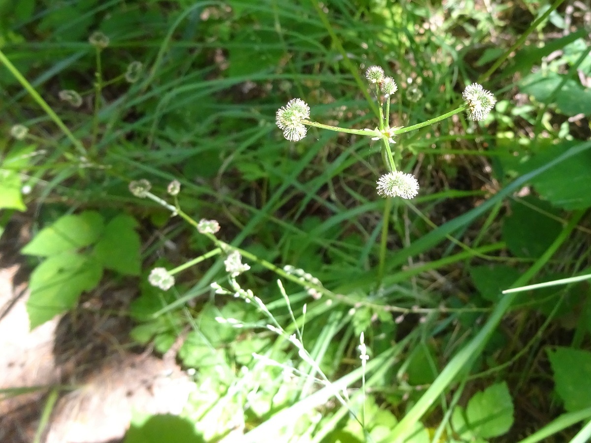 Hc – 2-5 dm – Feuilles (L 6-10 cm) palmées à 3-5 lobes obtus ± incisés, luisantes dessous – Fleurs en petites têtes globuleuses blanches ou rosées – Fruit (Ø 4-5 mm) à aiguillons crochus