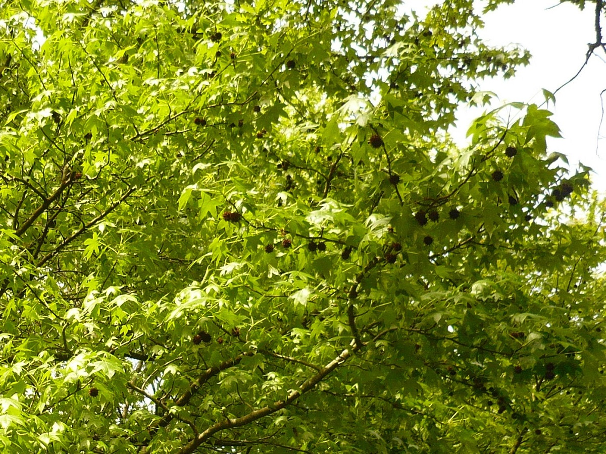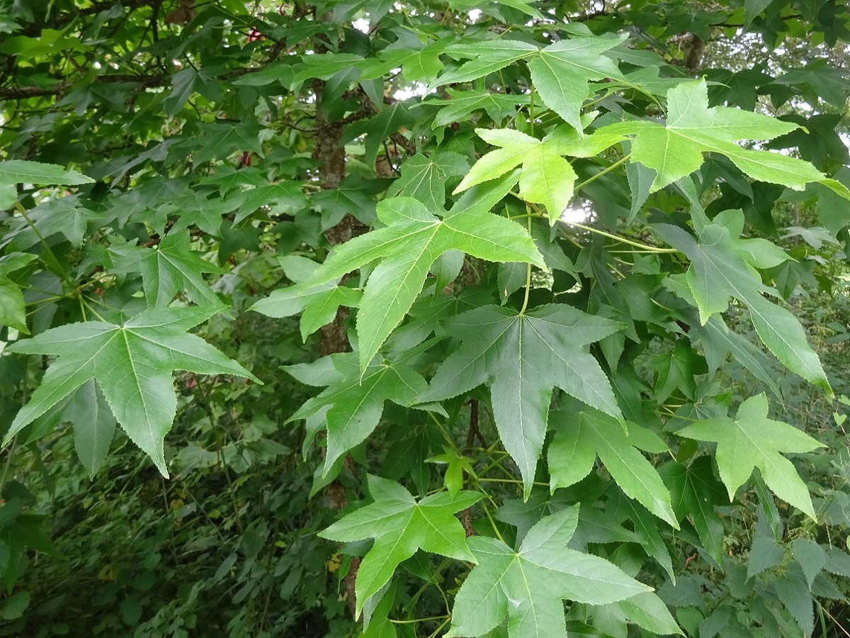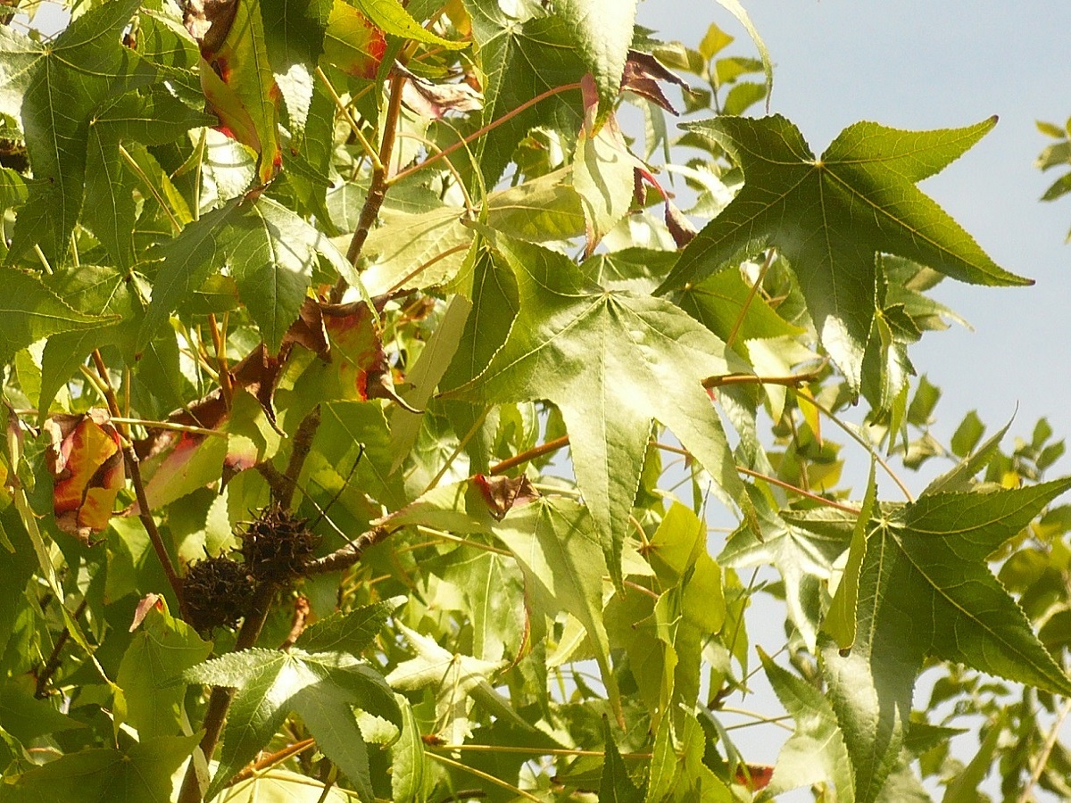 Ph – → 20 m – Feuilles à base tronquée, à 5 lobes triangulaires finement dentés, rougissant en automne – Capitules ♀ en glomérules sphériques pendants, longuement pédonculés par 2-4