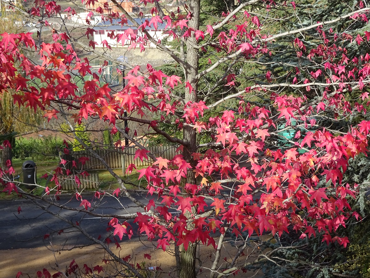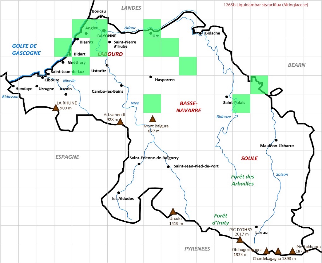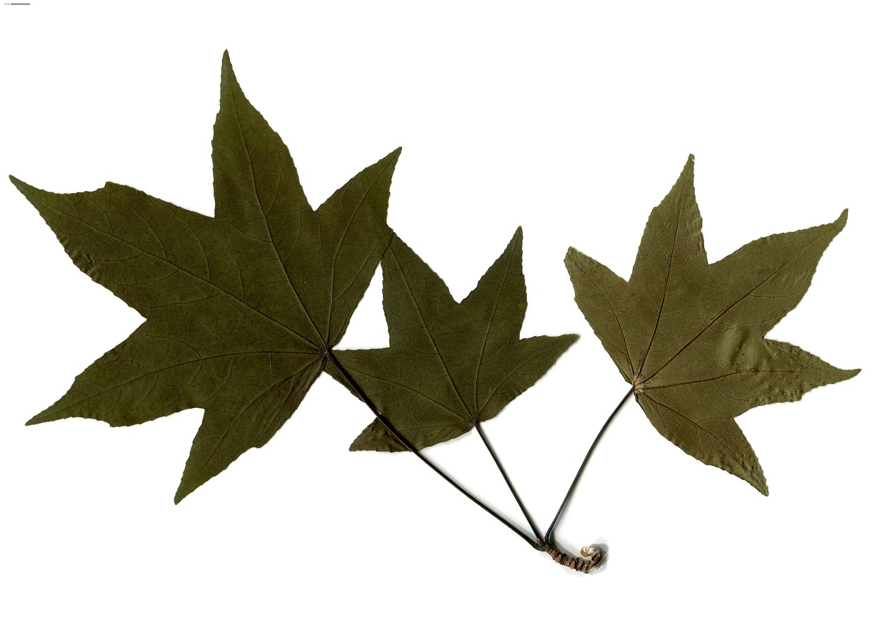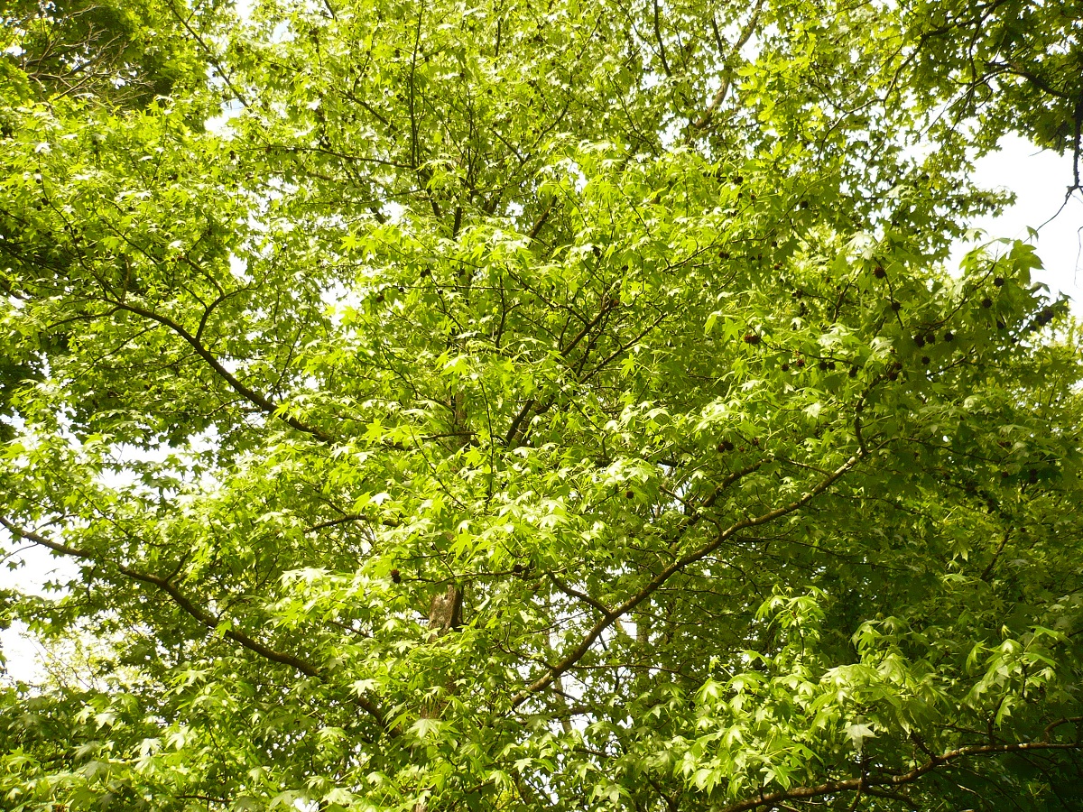 Ph – → 20 m – Feuilles à base tronquée, à 5 lobes triangulaires finement dentés, rougissant en automne – Capitules ♀ en glomérules sphériques pendants, longuement pédonculés par 2-4