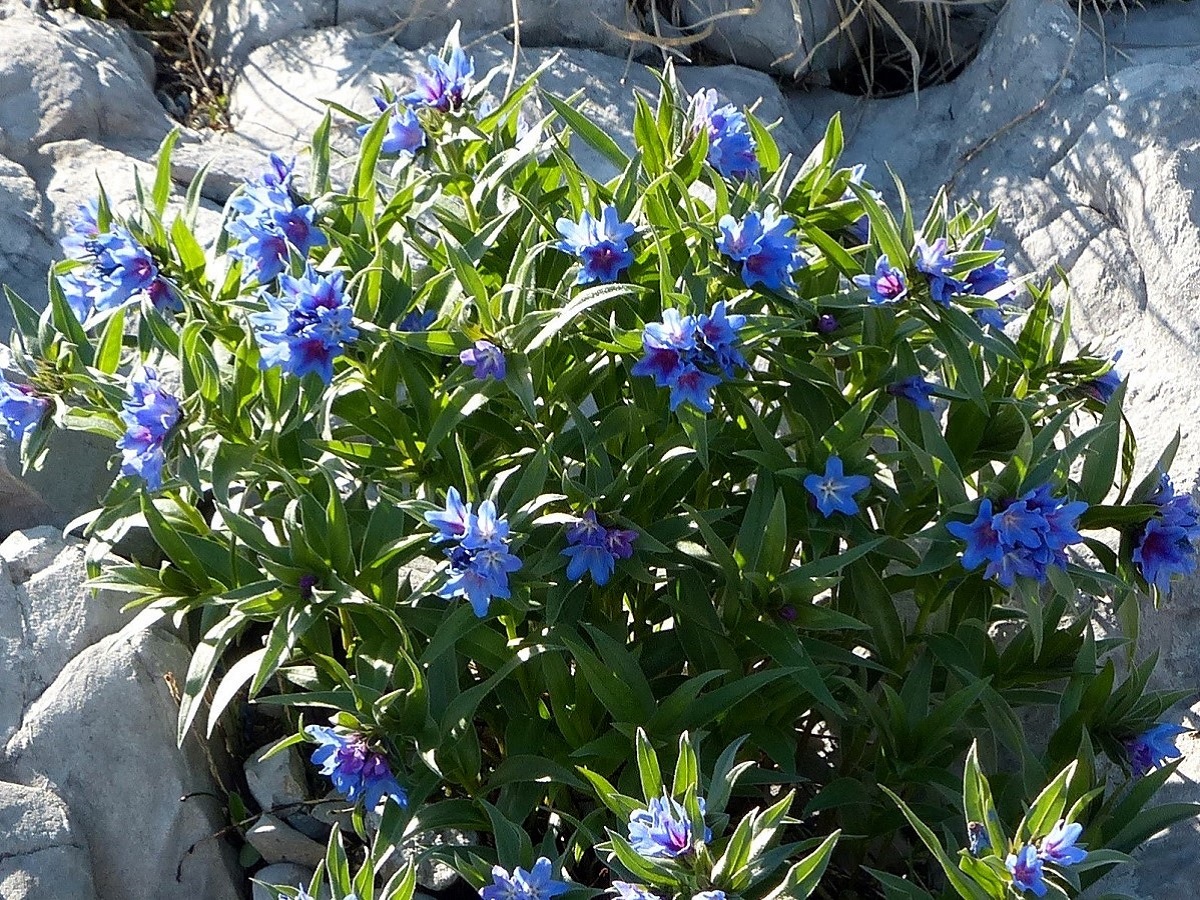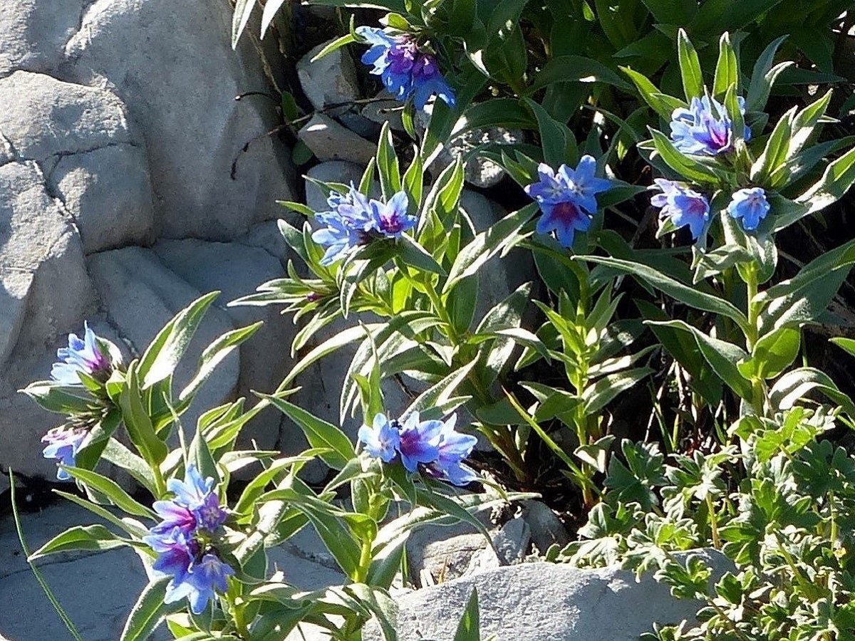 Hc – 1-3 dm – Tige velue, feuilles (l = 2-3 cm) lancéolées aiguës à base large – Cymes denses de fleurs, corolle (L 12-14 mm) pourpre puis bleu azur – Nucules ovoïdes aiguës lisses, jaunâtres