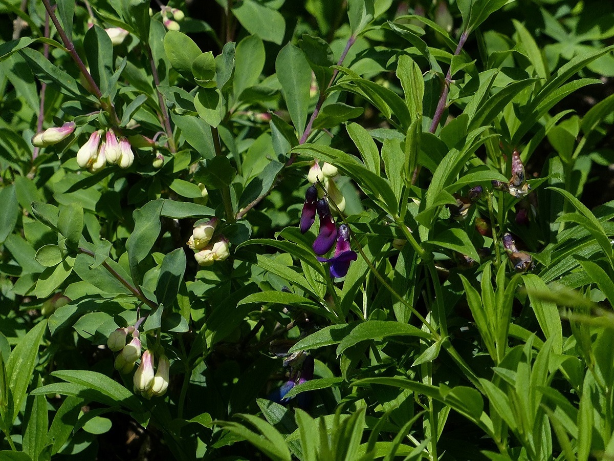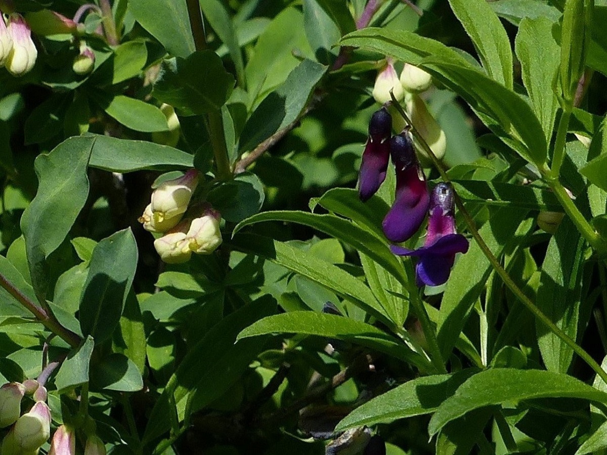 G à rhizome – 2-5 dm – Velue, tige ailée, feuilles à 4-8 folioles (L 2-3 cm) ovales lancéolées, sans vrille – Fleurs par 2-3, corolle (L 1,5-2 cm) violet-pourpre profond – Gousse velue L de 5-7 cm