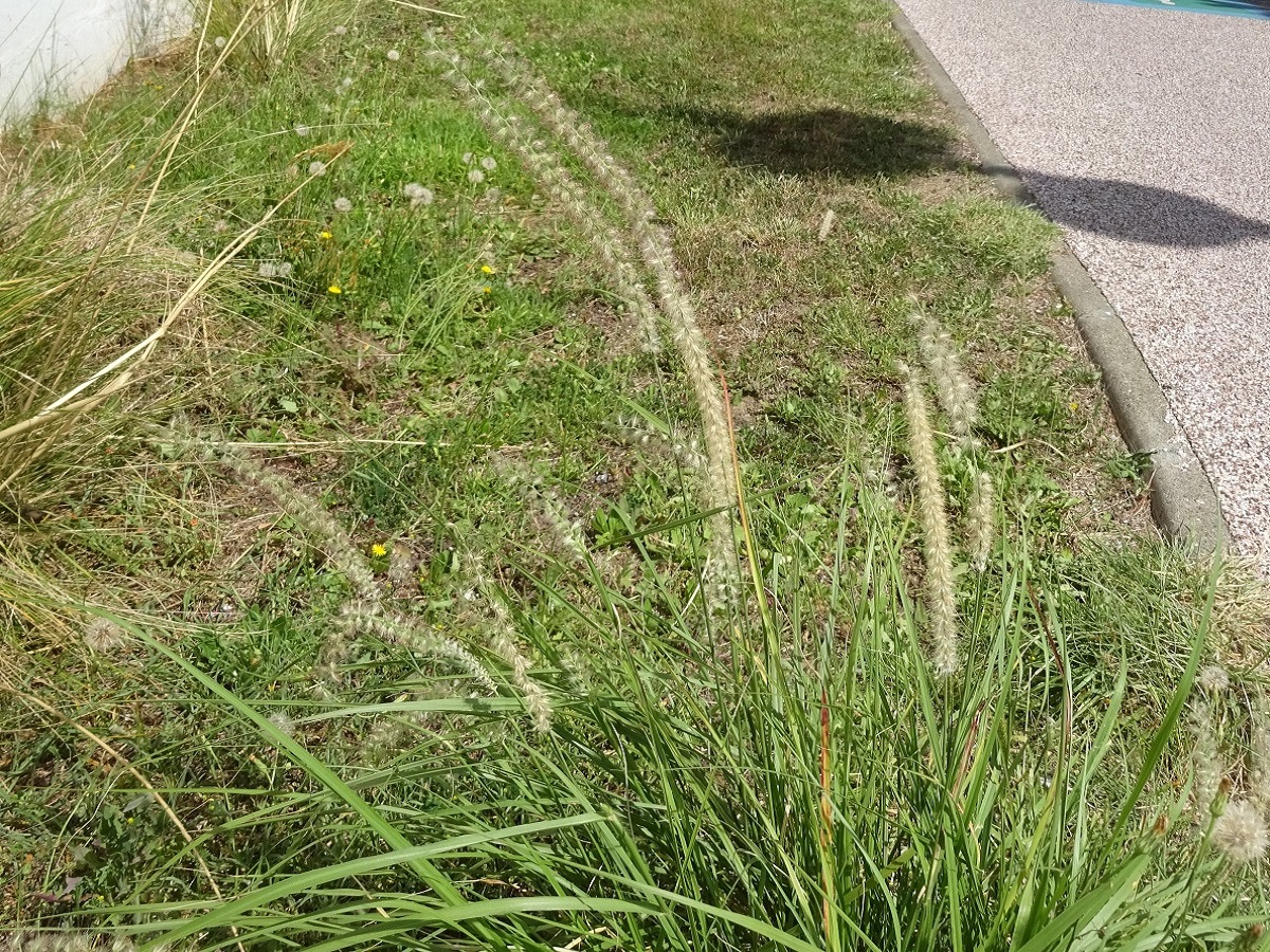 Hc – 4-12 dm – En touffes, tige ± arquée, feuilles longues étroites, rudes – Inflorescence cylindrique allongée (10-30 cm) à longues soies flexueuses plumeuses argentées, parfois pourprées
