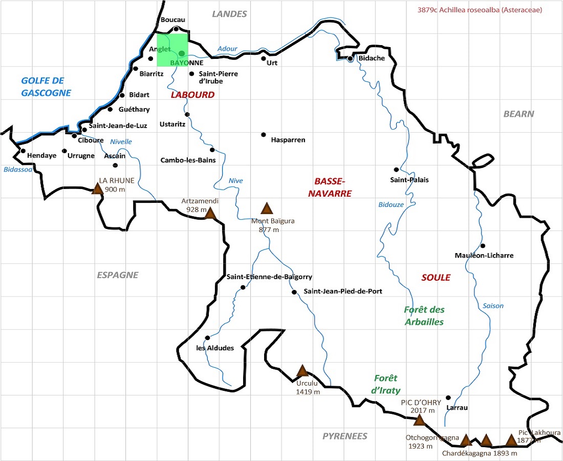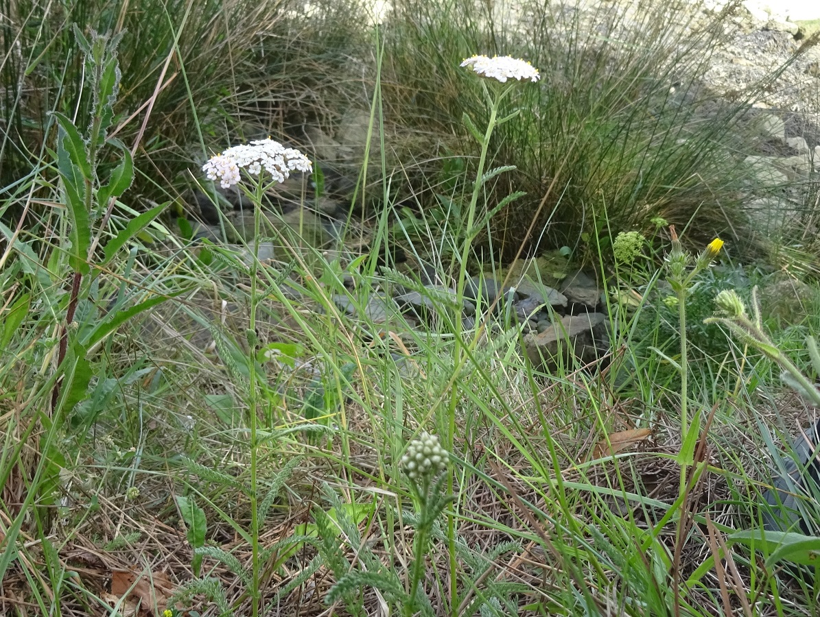Hc – 3-6 dm – Feuilles douces ± laineuses < 1 cm de large 3-pennées à lobes très fins – Capitules de Ø 4-5 mm peu nombreux, fleurons et hémiligules rose ± vif, bractées scarieuses