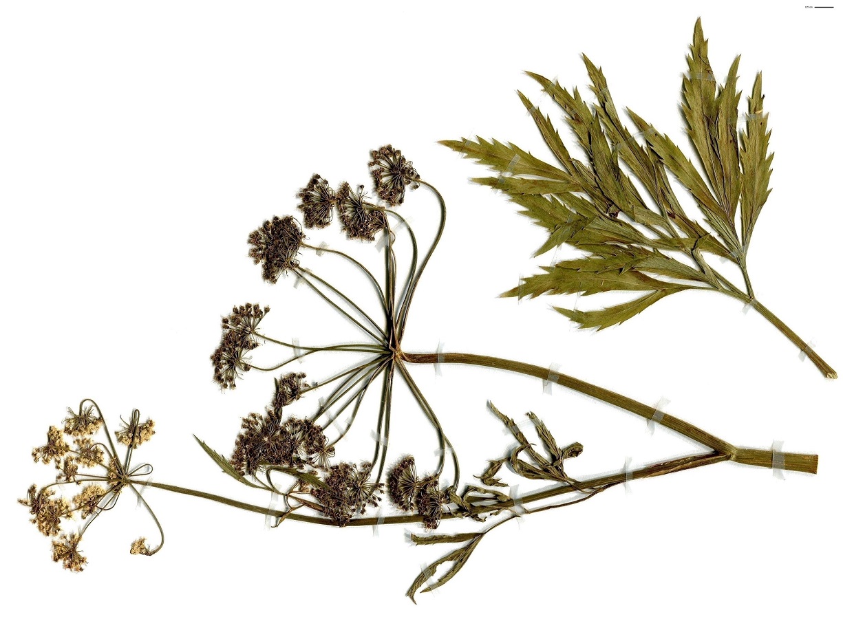 Hydr G à tubercule – 6-12 dm – Feuilles pennées à lobes lancéolés aigus dentés – Ombelles à 10-20 rayons, fleurs blanches, 6-8 bractéoles – Fruit globuleux de Ø ≃ 2 mm, styles déjetés