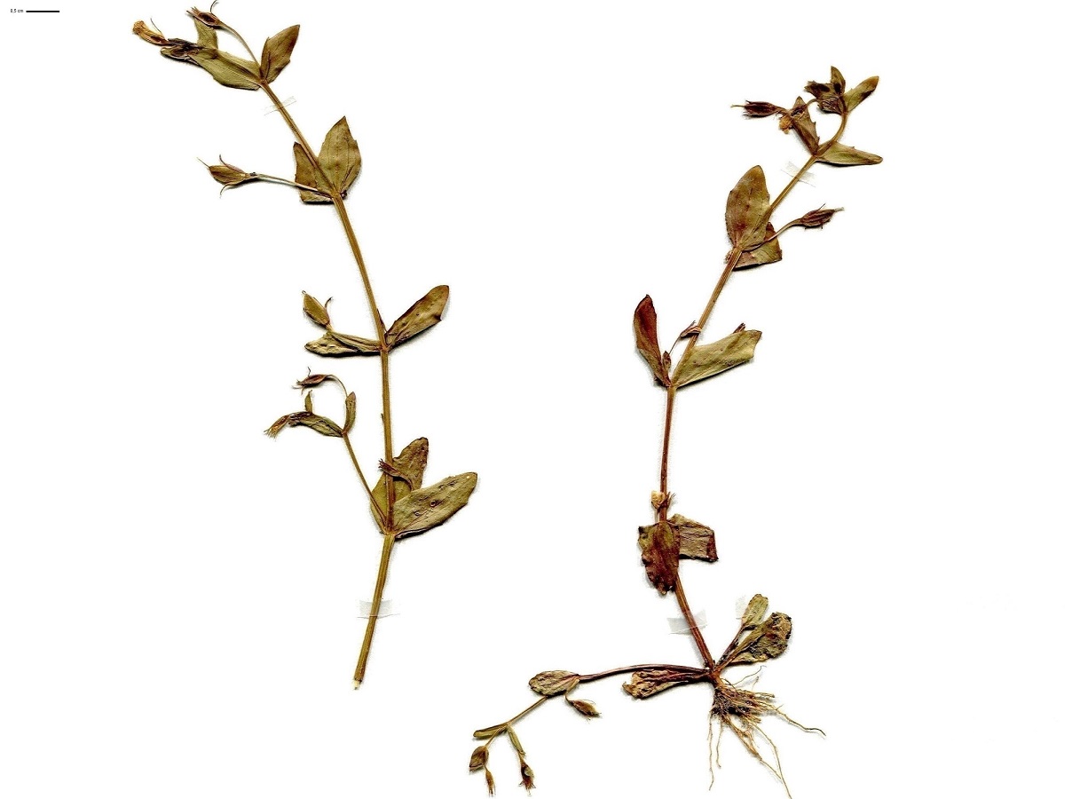 Th – 0,5-3 dm – Port ± couché, bractées opposées à base large, dentées – Fleurs à corolle L de 7-8 mm lilas > calice (L ≃ 5 mm), pédicelle longtemps < à sa bractée – Capsule (L 5-7 mm) > calice