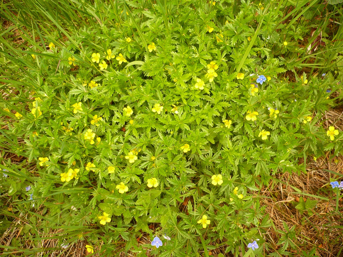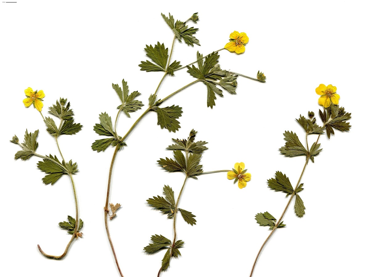 Hc – 1-5 dm – Feuilles digitées à 3-5 folioles obovales incisées-dentées, velues dessous – Fleurs assez petites à 4 pétales jaunes échancrés – Akènes peu nombreux glabres