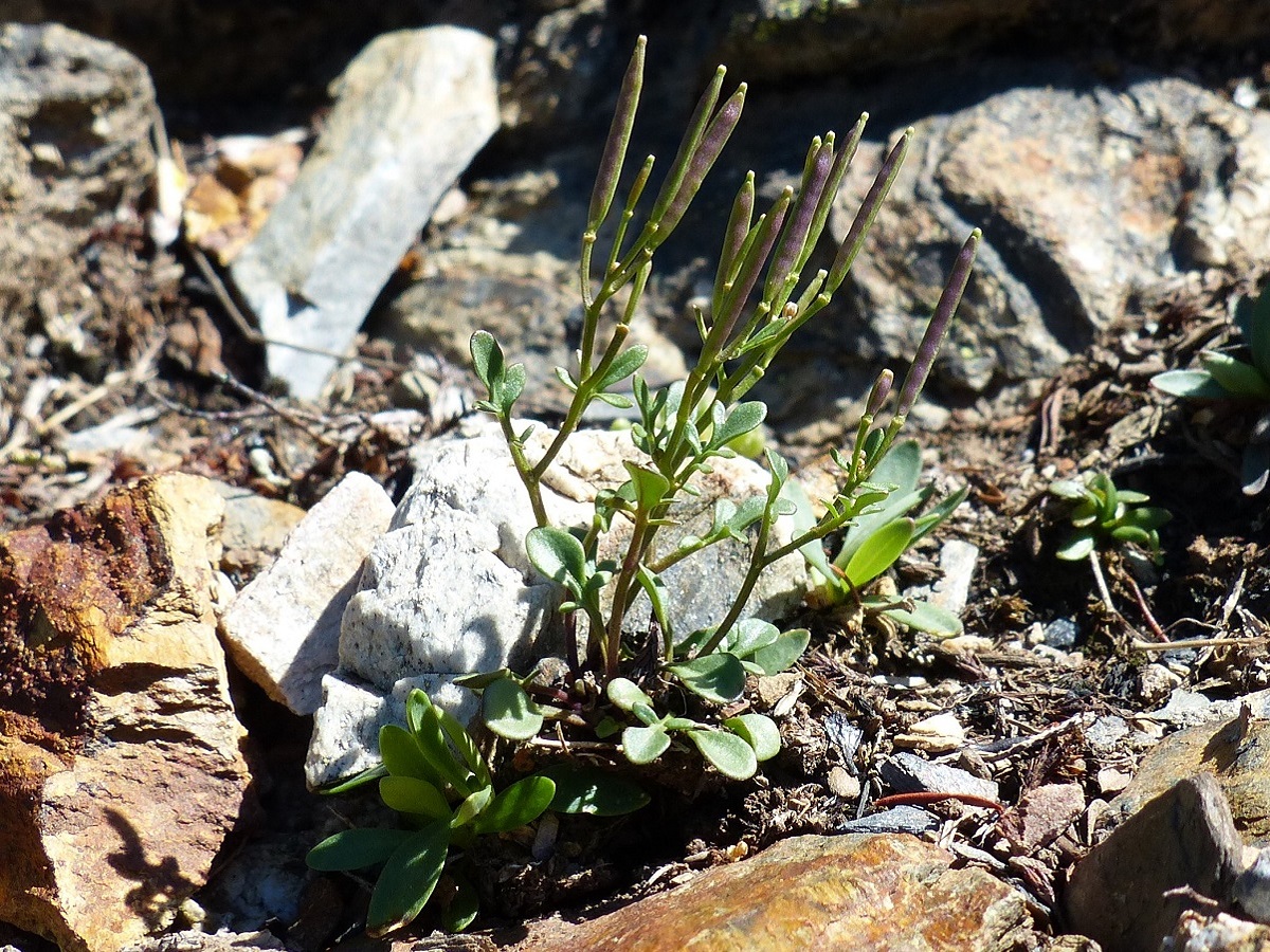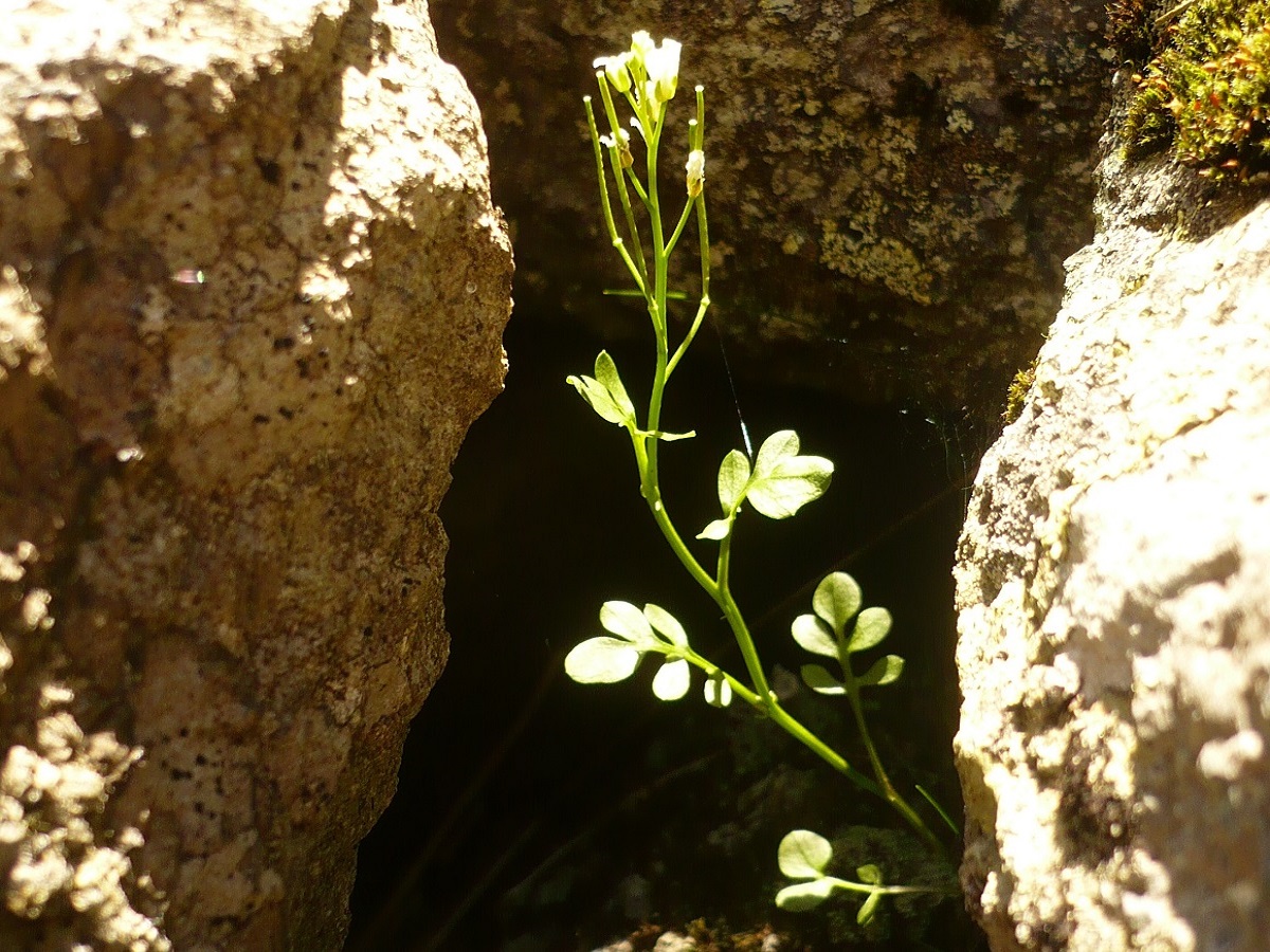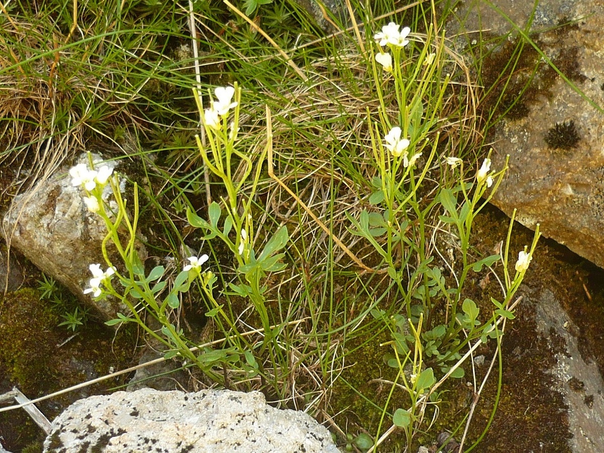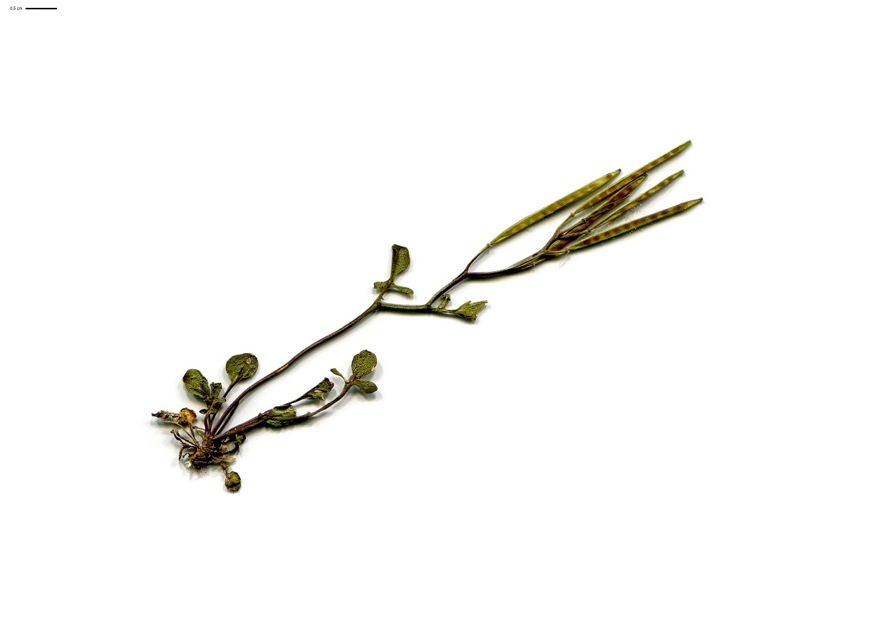 Hc – 0,5-1,5 dm – Feuilles pennatiséquées à 3-7 segments ovales, les > auriculées – Grappe pauciflore de petites fleurs à 4 pétales blancs – Siliques ± dressées