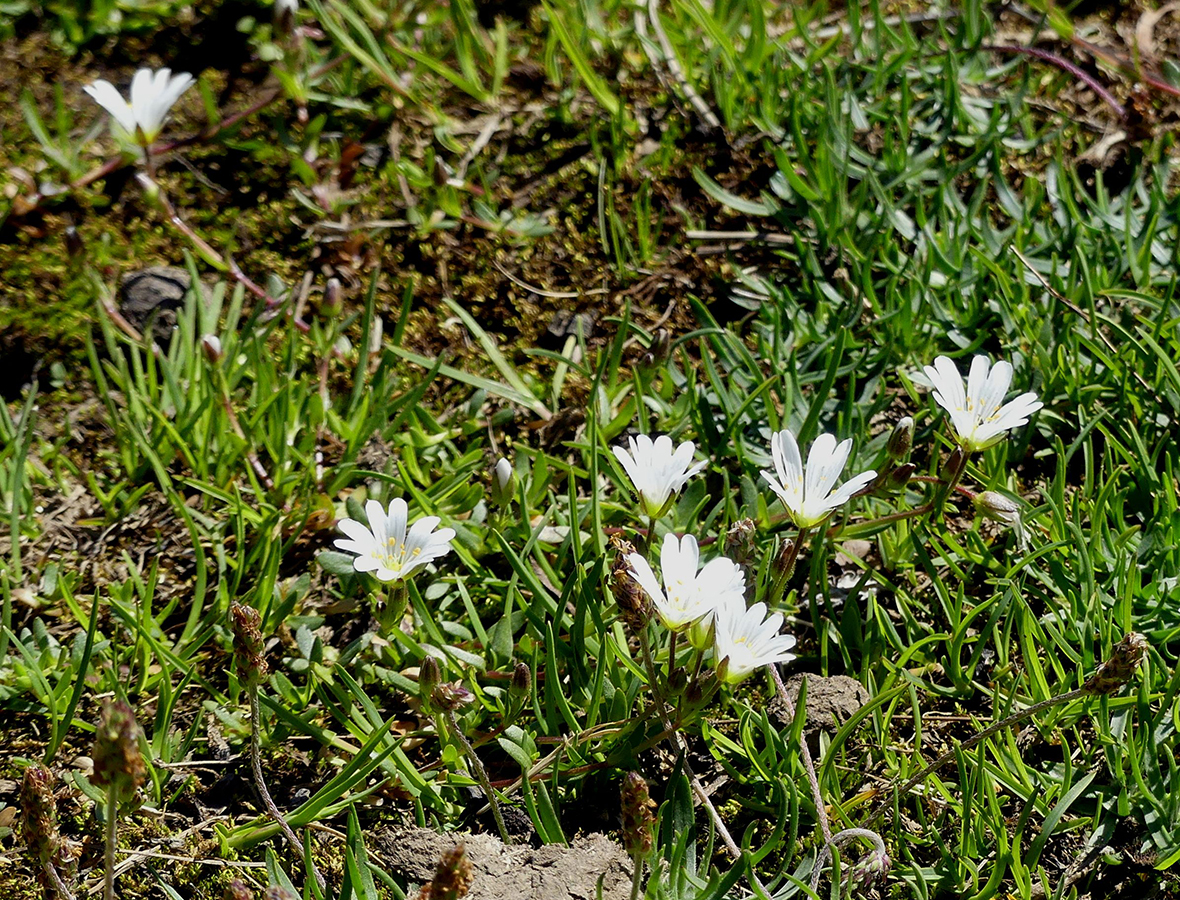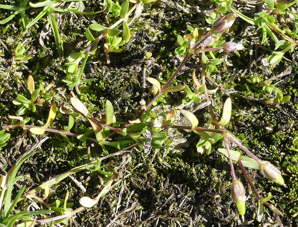 Hc – 0,5-1,5 dm – Tige ± couchée, feuilles opposées, ovales lancéolées, glabres – Fleurs de Ø 10-15 mm par 1-3 à 5 pétales blancs échancrés > aux sépales, 3 styles – Capsule à 6 dents