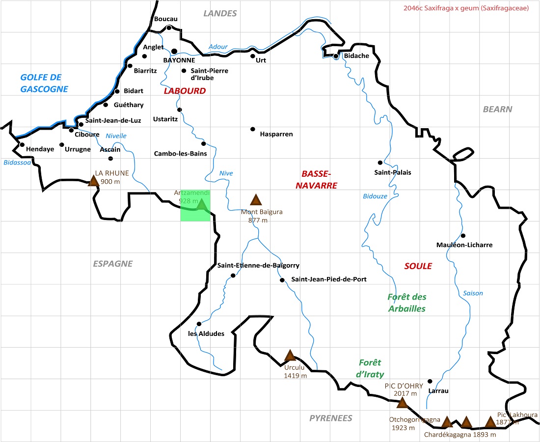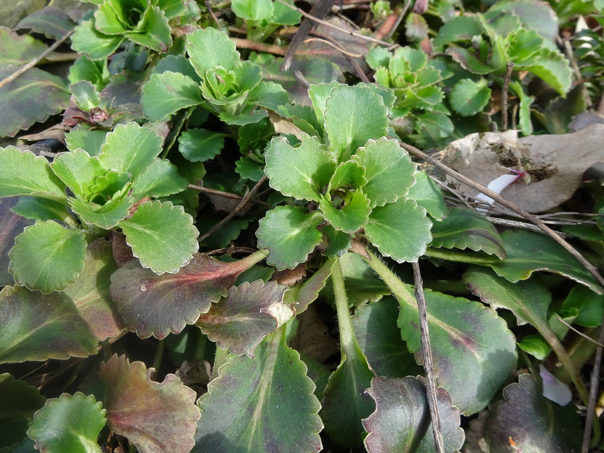 Ch – 2-4 dm – Feuilles à limbe arrondi à ovale, nettement crénelé, à envers pourpre, à pétiole ± long – Inflorescence pluriflore lâche, pétales (L 4-5 mm) blancs piquetés de jaune et de rouge