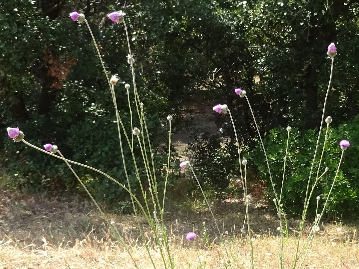 Hc – 5-20 dm – Dressé, feuilles à peu près glabres, entières décurrentes, à marge peu épineuse – Capitules (Ø 1-2 cm) à ± long pédoncule, fleurons pourpres, bractées à vitta nette et spinule
