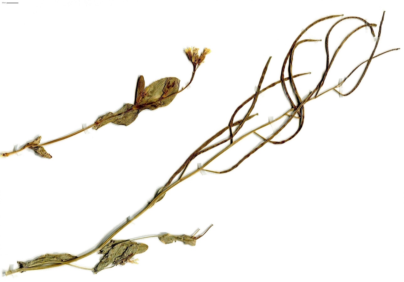 Th – 2-6 dm – Feuilles glauques, les < largement oblongues entières, les > embrassantes en coeur – Fleurs à 4 pétales L de 8-14 mm ± jaunâtres – Siliques longues (6-14 cm) flexueuses