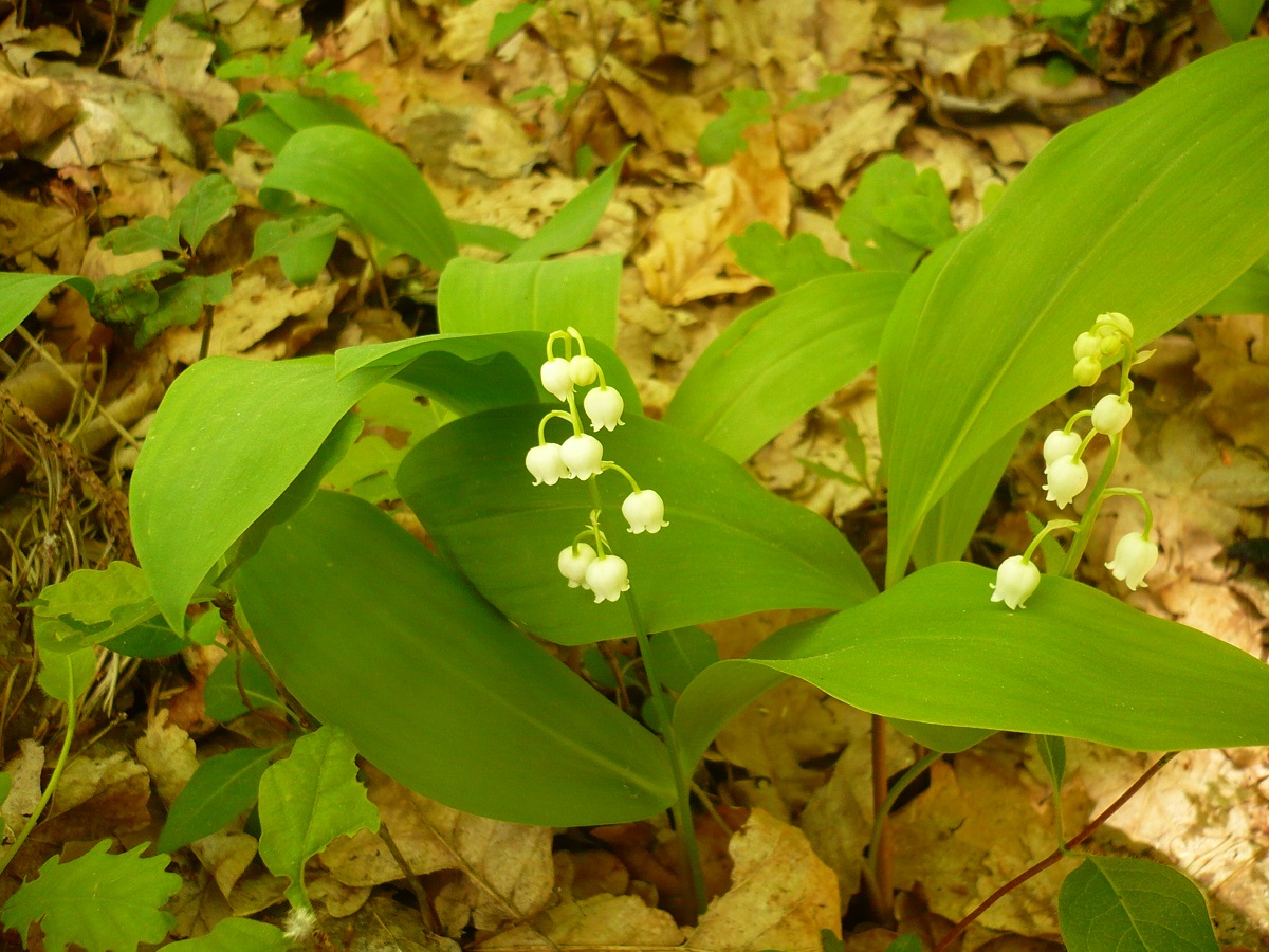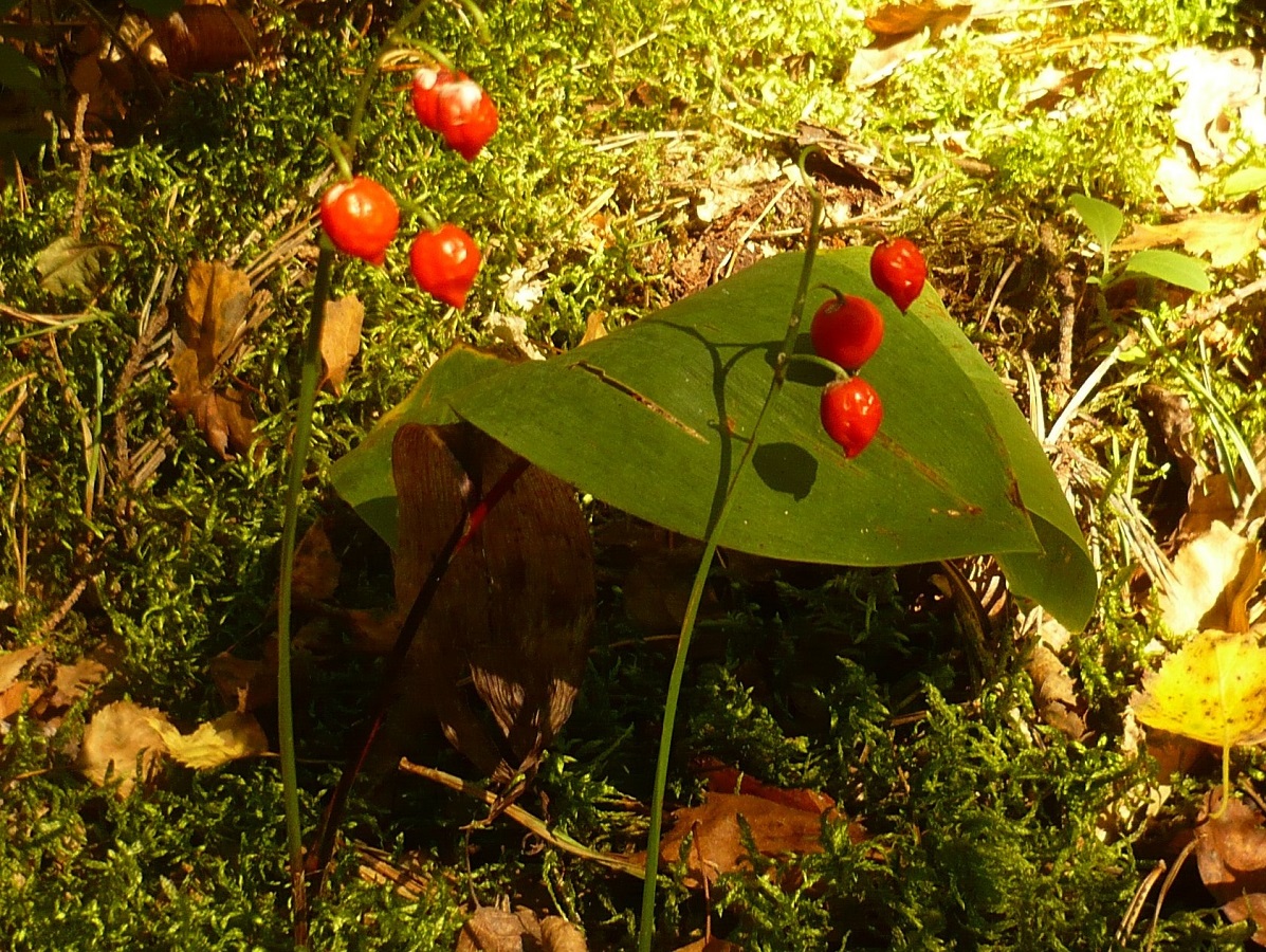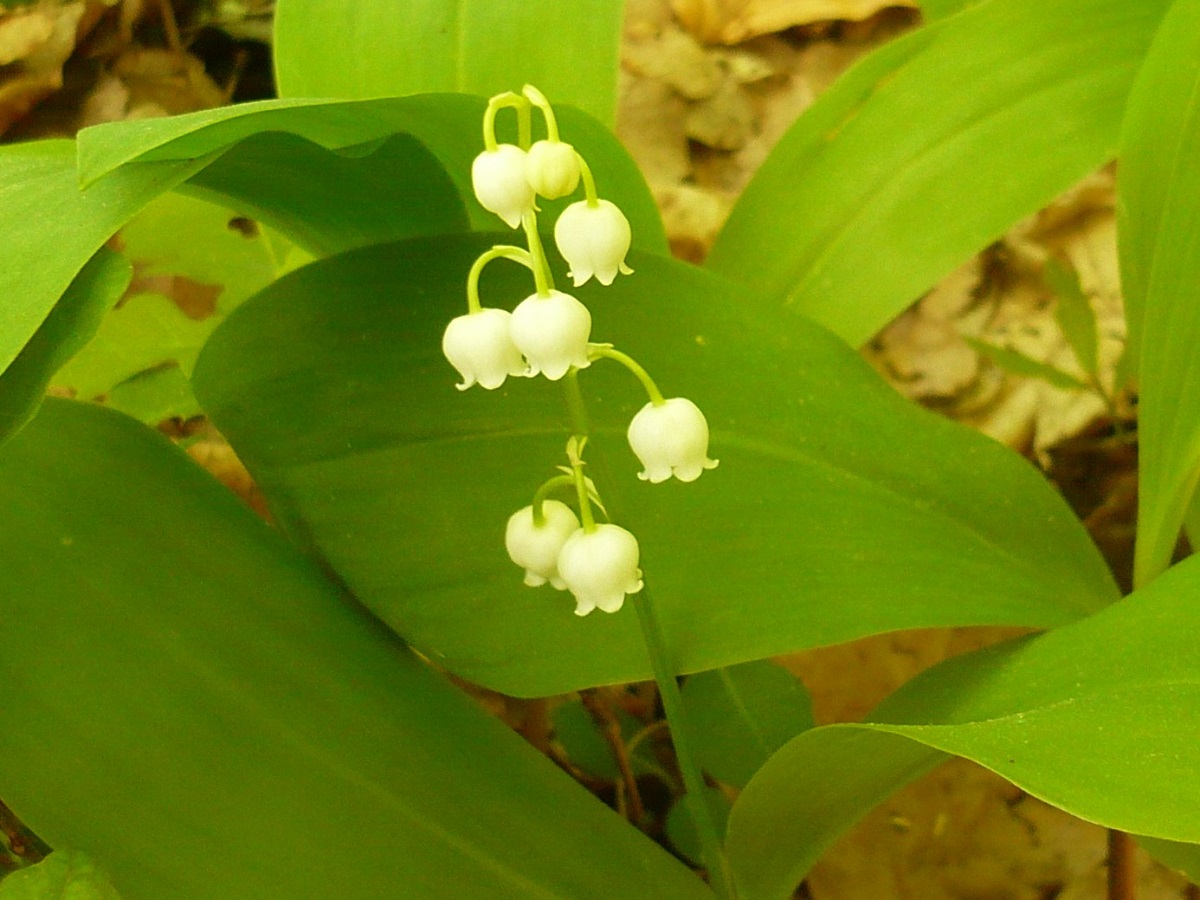 G à rhizome – 1,5-2,5 dm – Feuilles larges, ovales-aiguës, réunies par deux – Grappe unilatérale de fleurs pendantes blanches en clochette parfumée – Baie globuleuse rouge