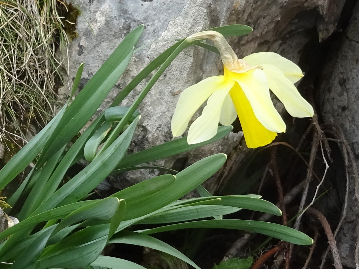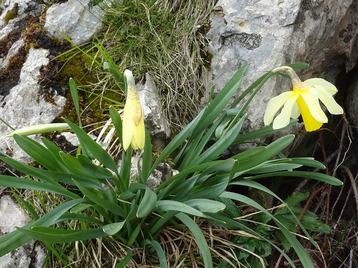 G à bulbe – 1,5-3 dm – Feuilles allongées assez larges, obtuses – Fleur en trompette à tube jaune étroit profond à marge peu à ± crénelée, à tépales oblongs pâles – Capsule ovoïde
