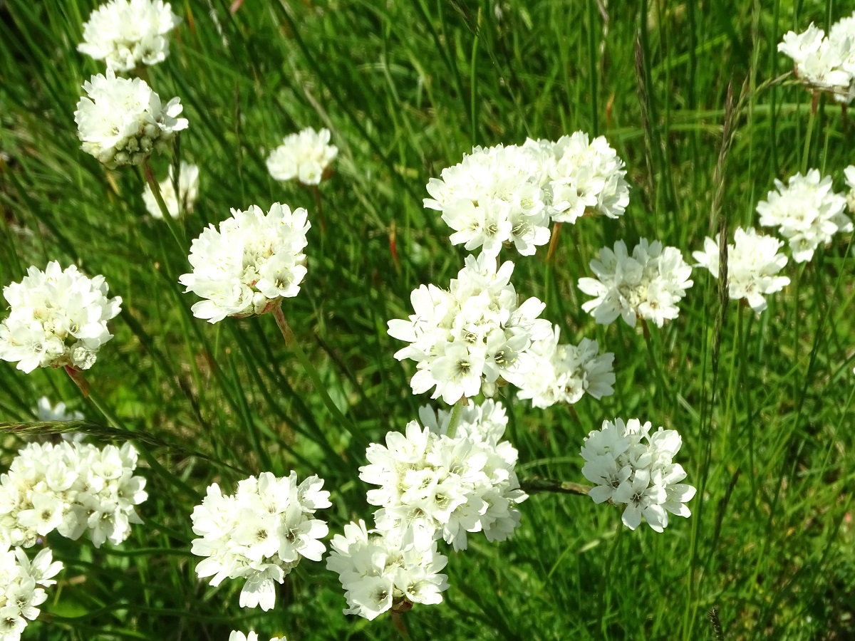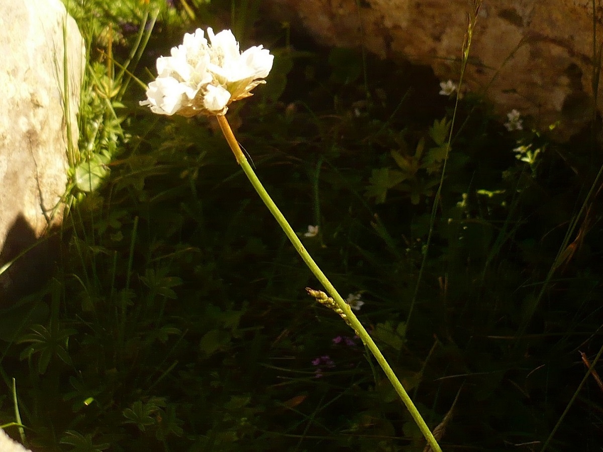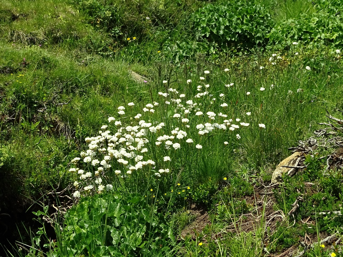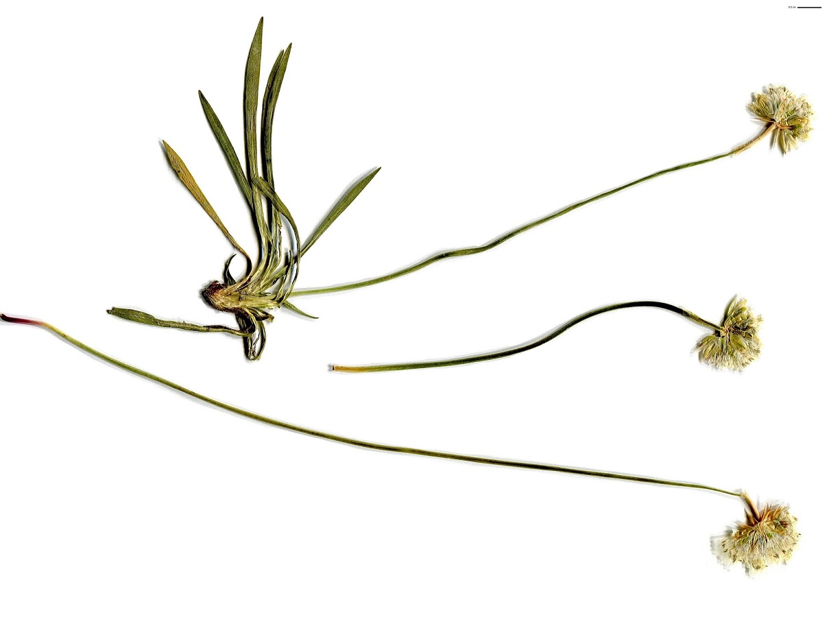 Ch – 1-3 dm – Feuilles basales lancéolées de l ≃ 3 mm, ciliées – Hampe de L ≃ 20 cm, fleurs en tête blanche globuleuse de Ø ≃ 2 cm, gaine < scarieuse de L ≤ 2 cm, bractées ovales lancéolées