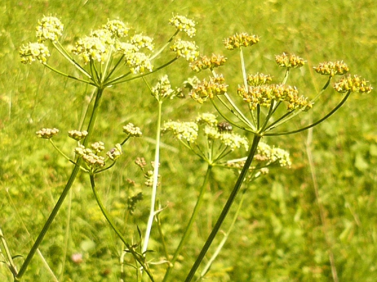 Hc – 5-15 dm – Feuilles triangulaires 2- à 4-pennées à lobes lancéolés ≥ 3 mm de large – Ombelles à 5-15 rayons striés, fleurs jaunâtres, bractéoles linéaires scarieuses – Fruit L de 4-5 mm