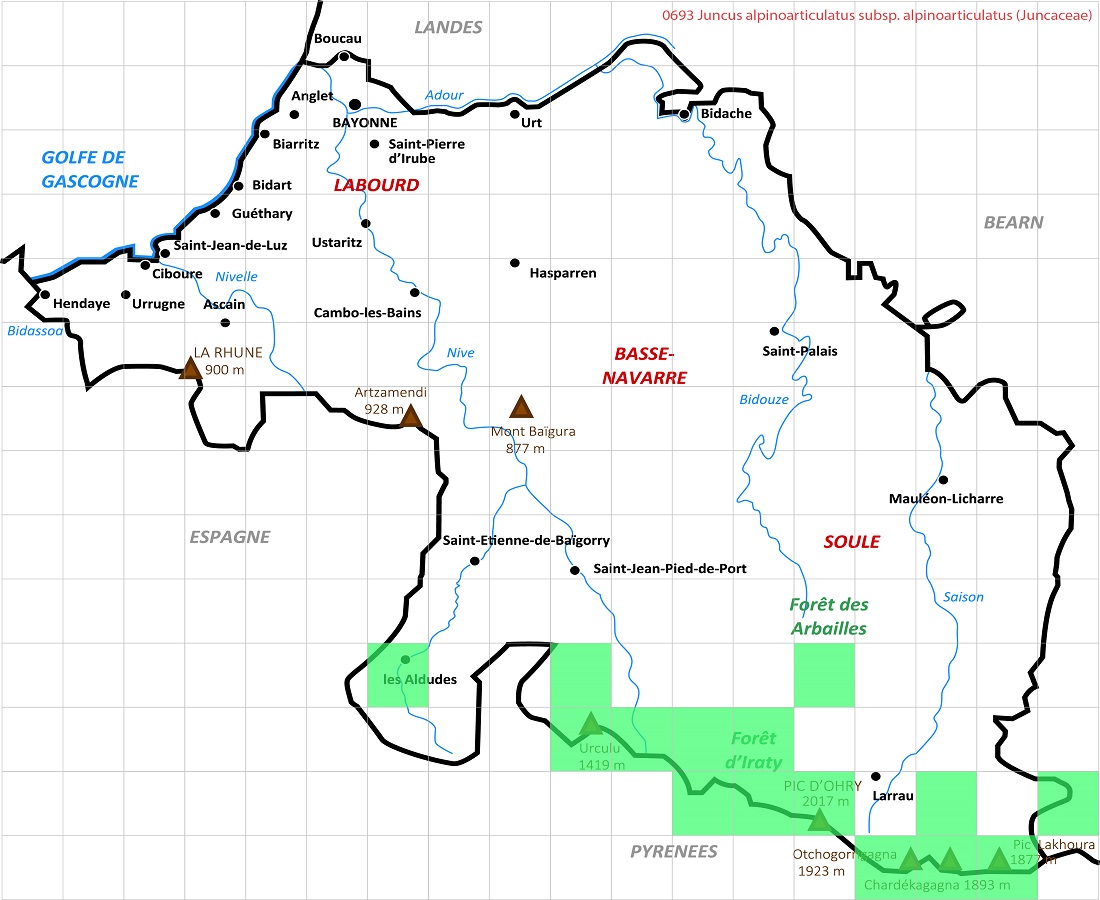 G à rhizome – 2-4 dm– Tige et feuilles raides, noueuses – Inflorescence ± lâche dressée à 3-7 glomérules pauciflores noir luisant – Capsule ovoïde dépassant les tépales obtus, mucronés