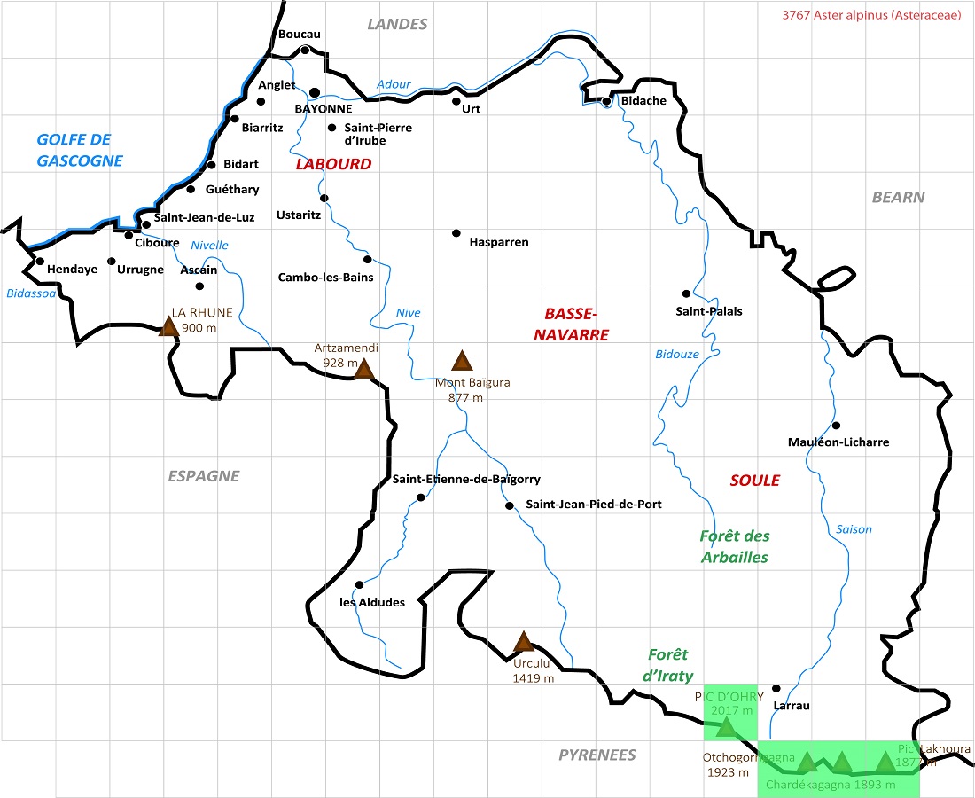 Nom Latin du taxon (Famille) Aster alpinus (Asteraceae) - Synonymes Latins - nc Nom Français du taxon Aster des Alpes - Autres Noms Français - nc Nom en Euskara nc - Autres Noms en Euskara - nc Identifiant 3767