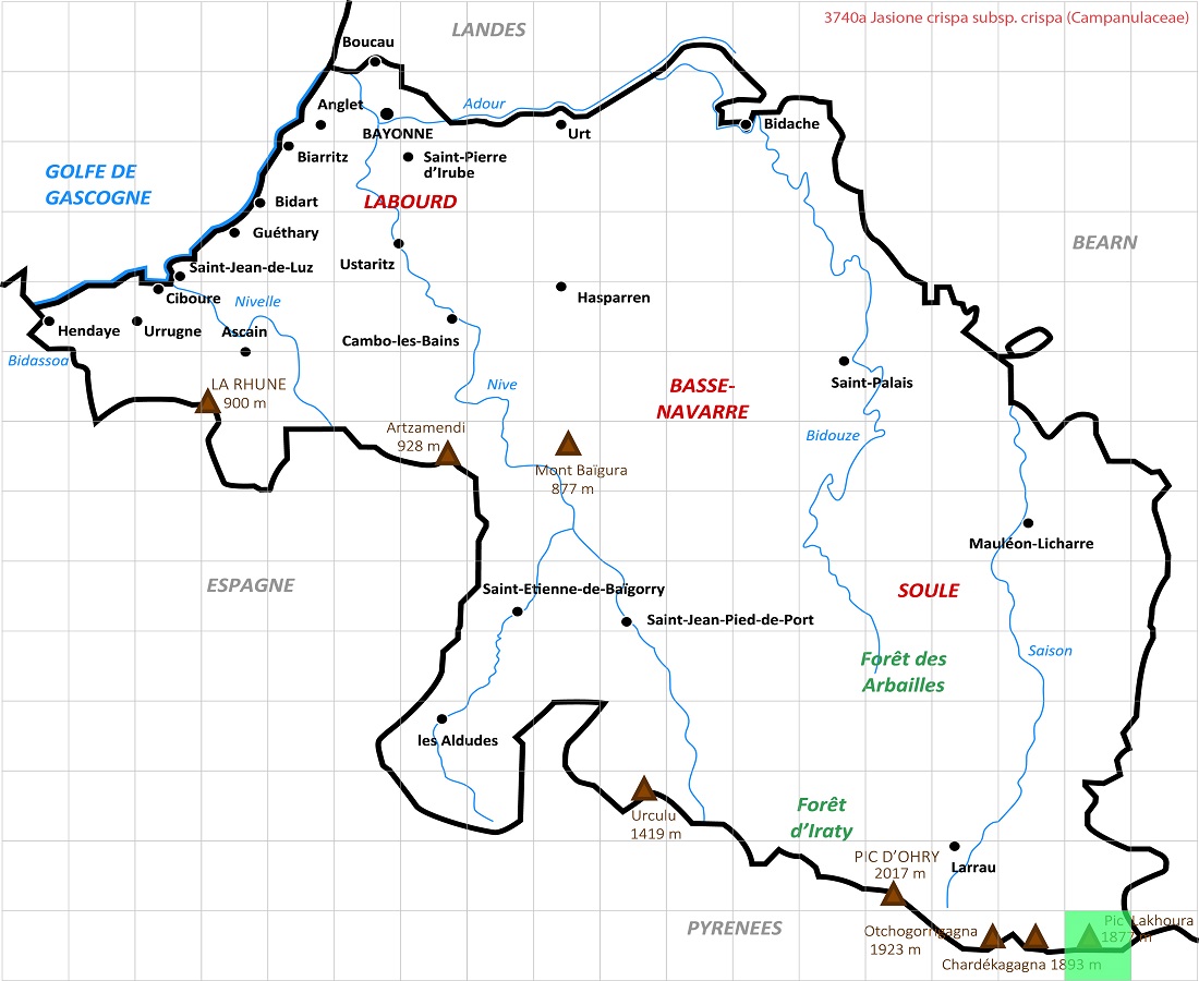 Nom Latin du taxon (Famille) Jasione crispa subsp. crispa (Campanulaceae) - Synonymes Latins - nc Nom Français du taxon Jasione crépue - Autres Noms Français - Jasione naine Nom en Euskara nc - Autres Noms en Euskara - nc Identifiant 3740a