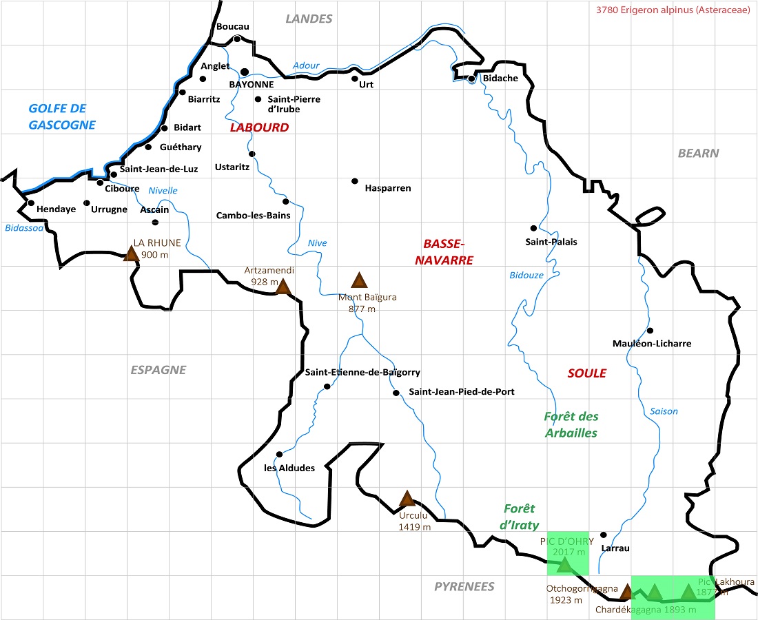 Rare – Été – Pelouses et rocailles subalpines – Très localisé, sommets élevés de Haute Soule, au Pays Basque