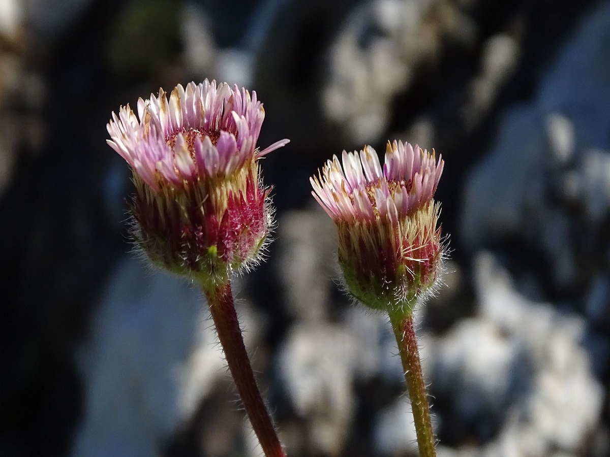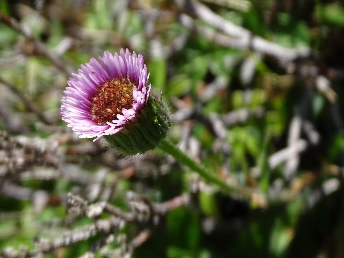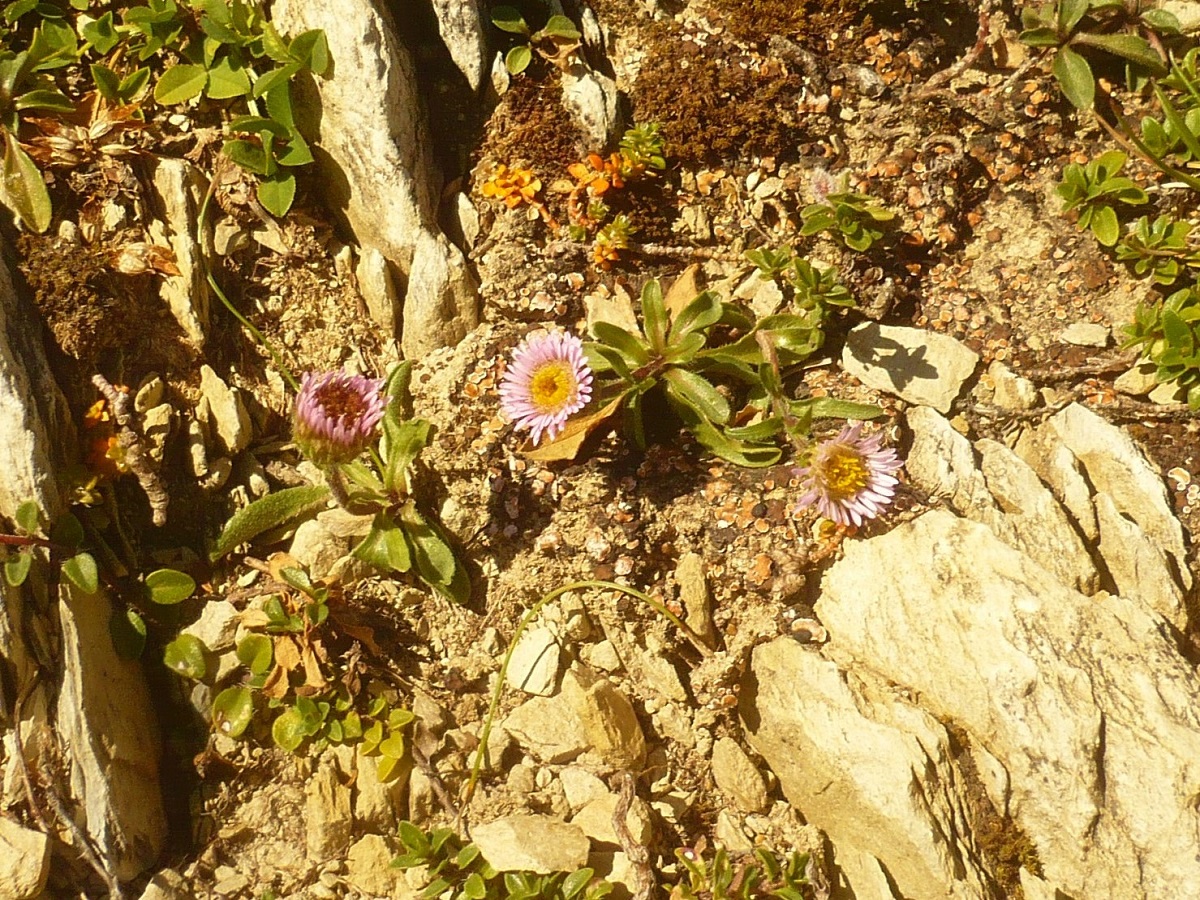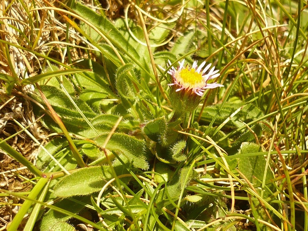 Hc – 0,5-2 dm – Feuilles velues ciliées, les < spatulées ± larges, les > lancéolées – 1-3 Capitules de Ø 1,5-2,5 cm, hémiligules lilas, disque jaune, bractées velues ± pourpres