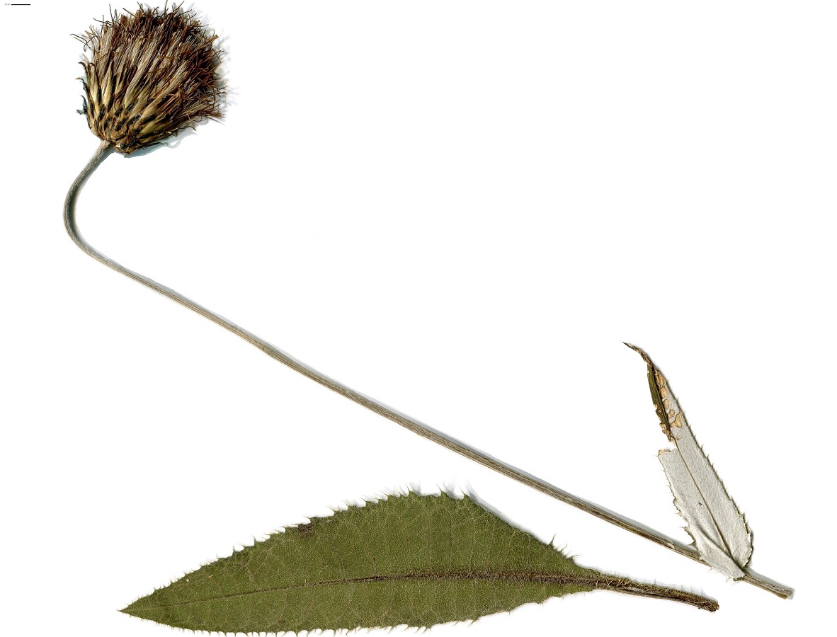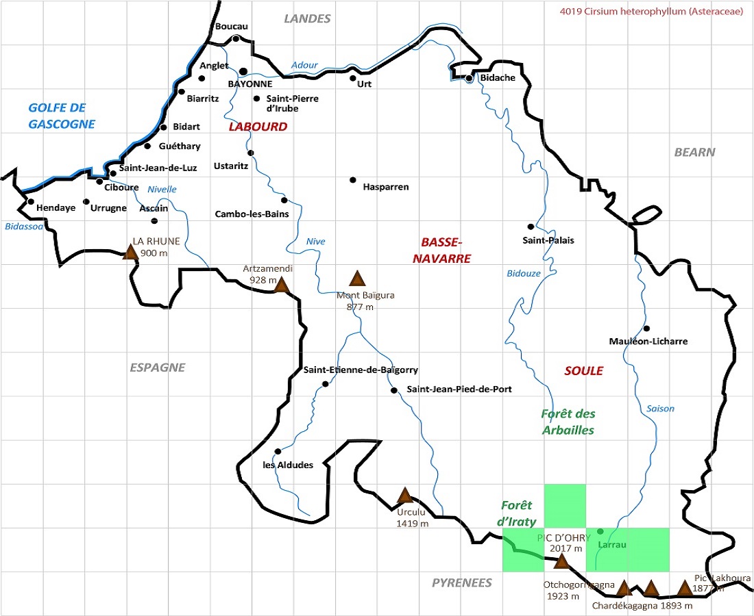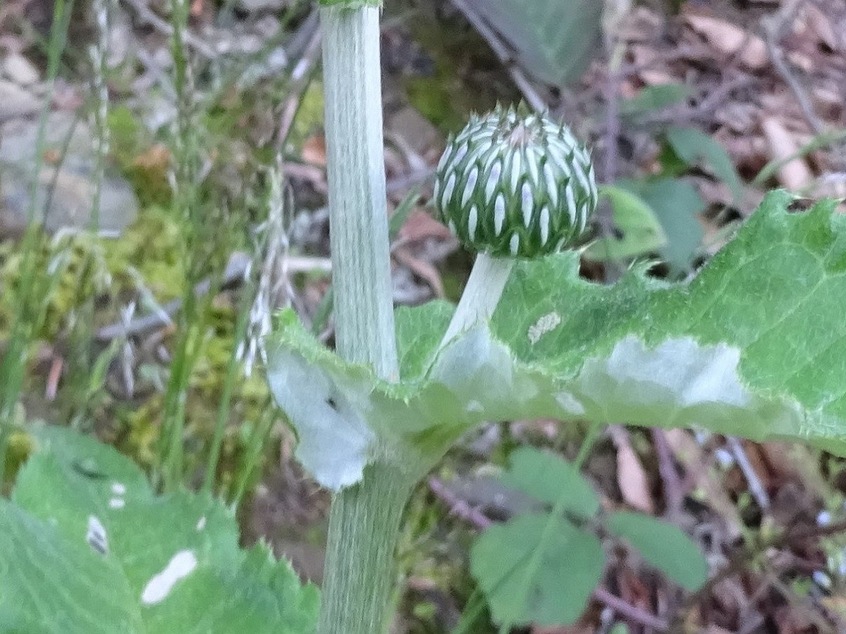 Hc – 5-10 dm – Feuilles planes lancéolées peu épineuses, à revers argenté, les > auriculées – Capitule de Ø 3,5-5 cm pédonculé, fleurons pourpres, bractées à faible spinule