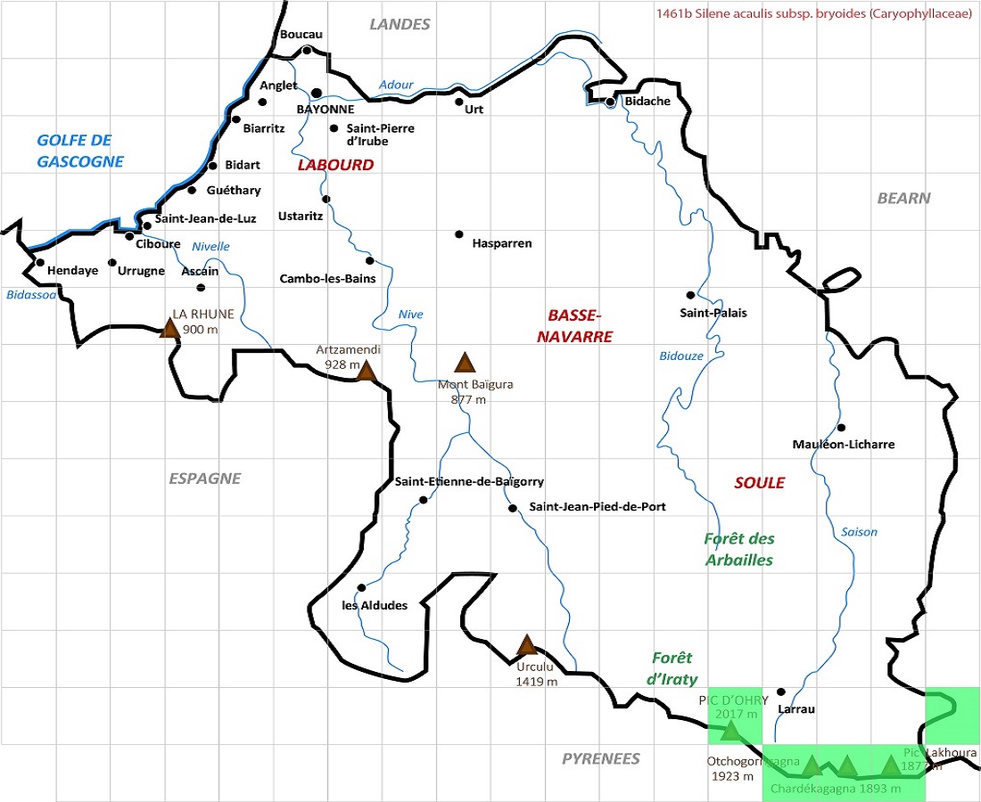 Nom Latin du taxon (Famille) Silene acaulis subsp. bryoides (Caryophyllaceae) - Synonymes Latins – (Syn. Silene acaulis subsp. exscapa) Nom Français du taxon Silène acaule - Autres Noms Français - nc Nom en Euskara nc - Autres Noms en Euskara - nc Identifiant 1461b