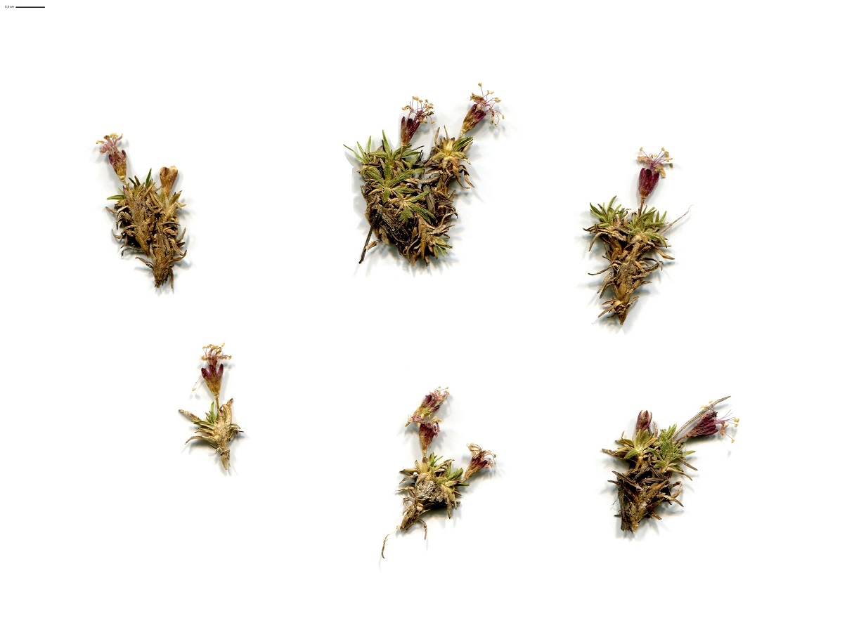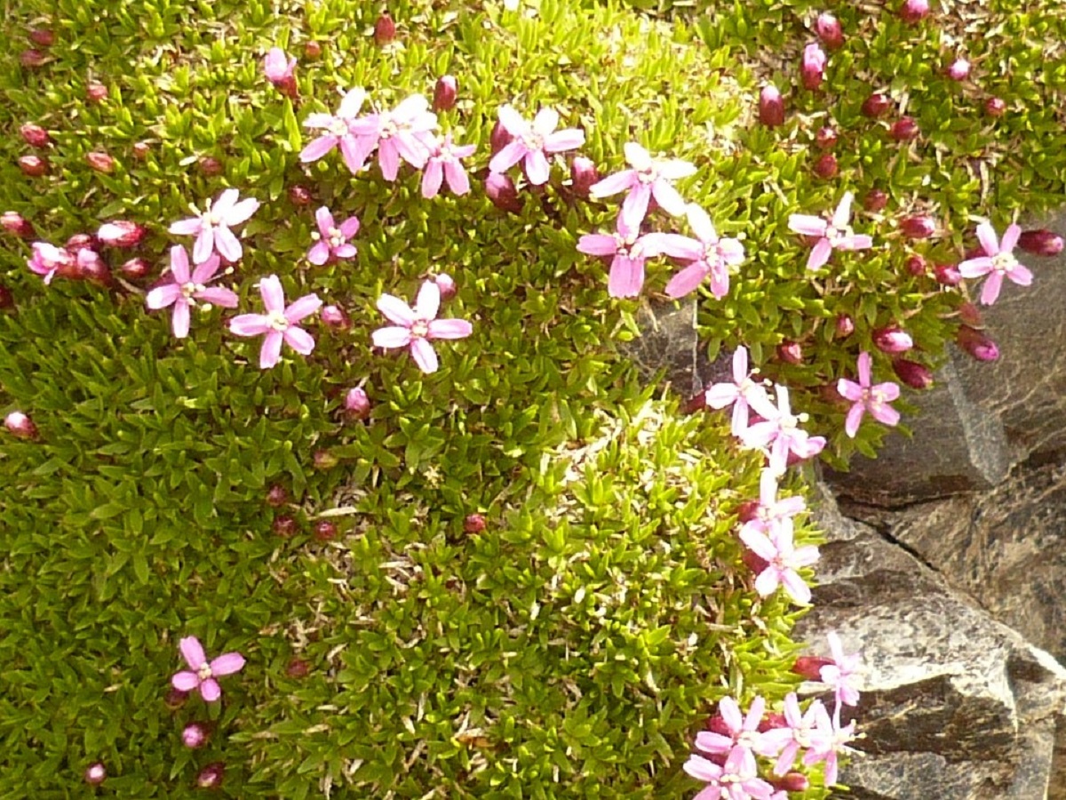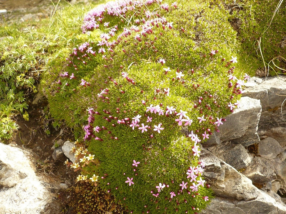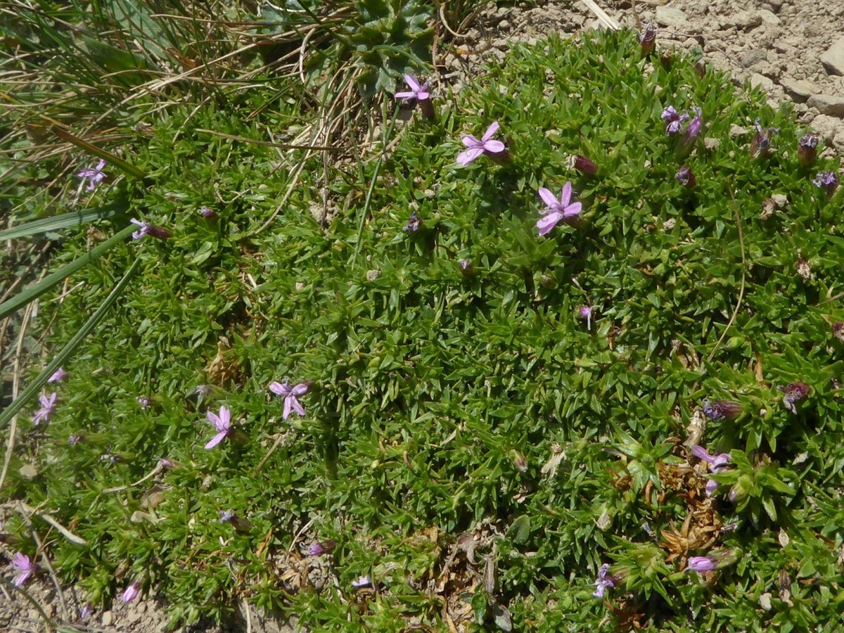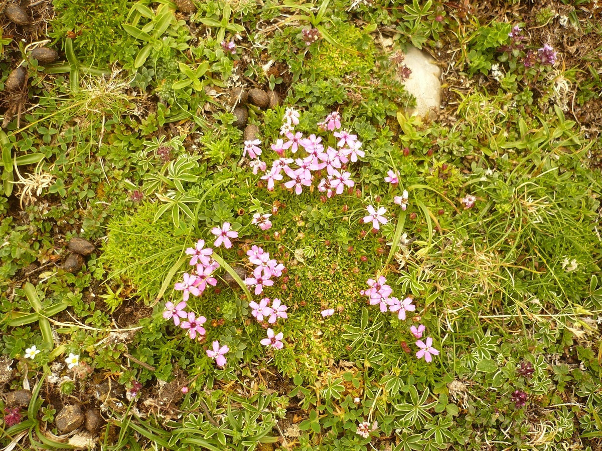 Ch – 0,2-0,5 dm – Tige à peu près nulle, feuilles L de 2-8 mm étroites, densément imbriquées en coussinet – Fleur par 1, de Ø 7-8 mm, à 5 pétales roses étroits, échancrés – Capsule ovoïde