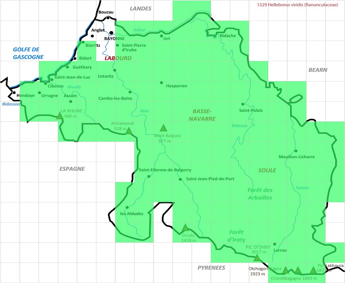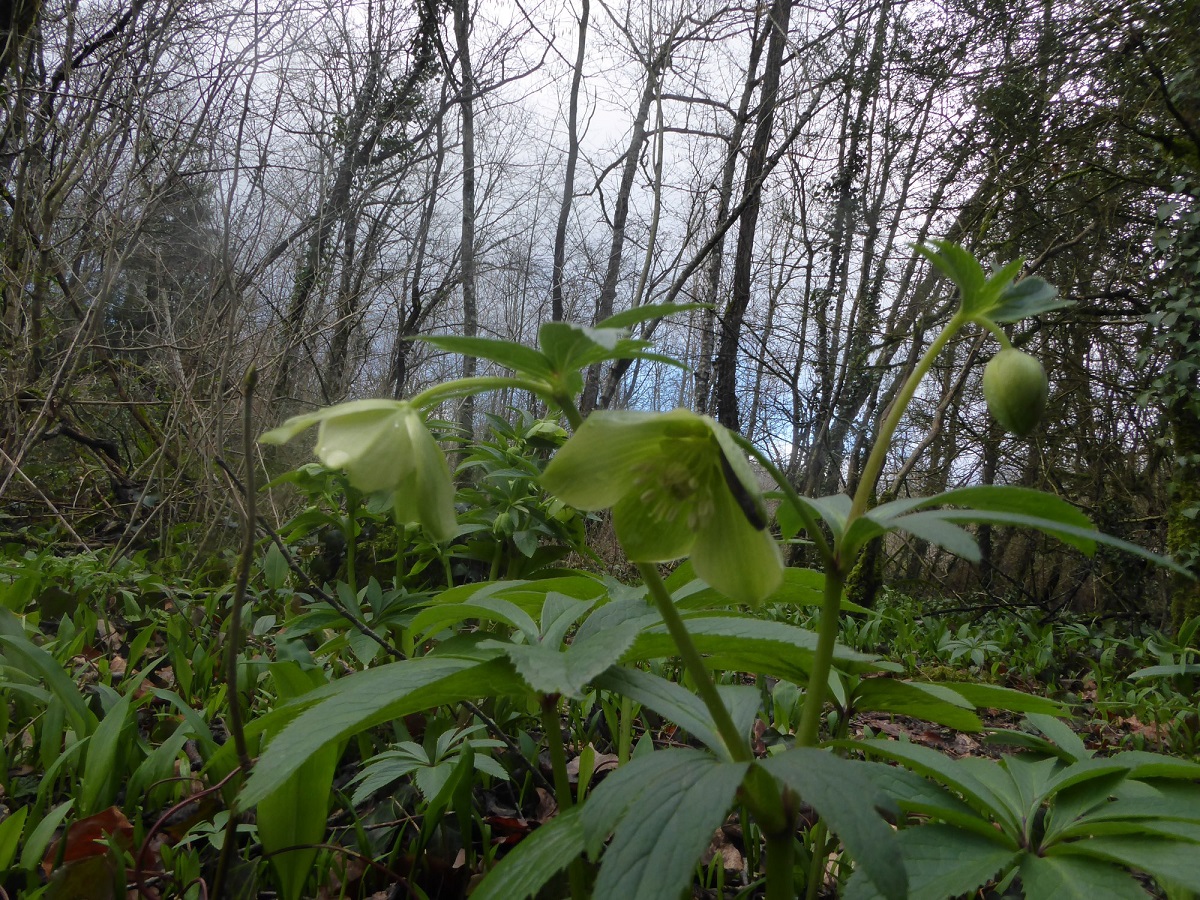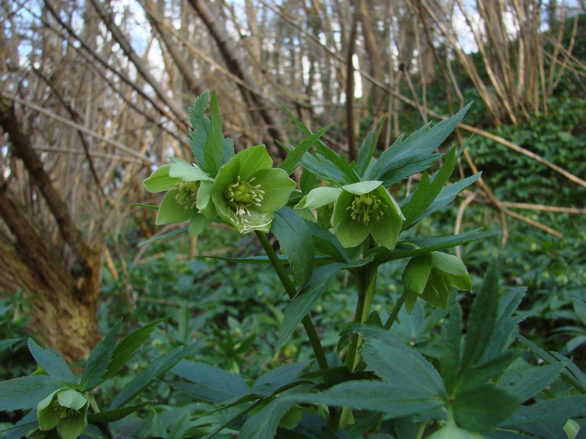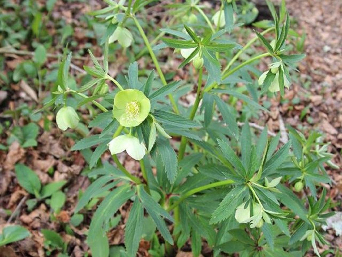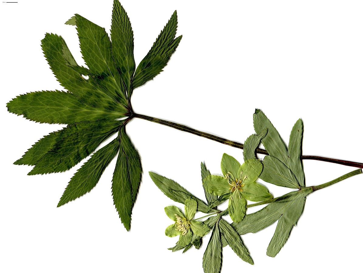 G à rhizome – 2-5 dm – Feuilles à 7-13 lobes digités, irrégulièrement dentés, glabres – Fleurs de Ø 4-5 cm à 5 tépales vert-jaunâtre assez étroits, étalés – Follicules libres à bec long