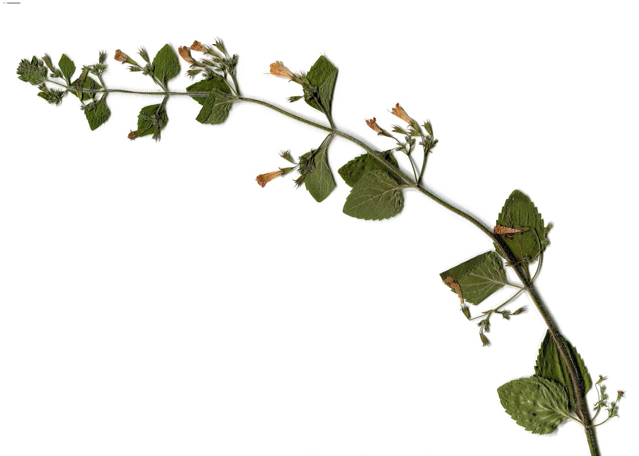 Hc – 3-6 dm – Odorant, feuilles (L 2-7 cm) ovales nettement crénelées-dentées, pétiolées – Inflorescence lâche, corolle de L 1,5-2,2 cm lilacée à lèvre < ponctuée, à tube et pédoncule longs