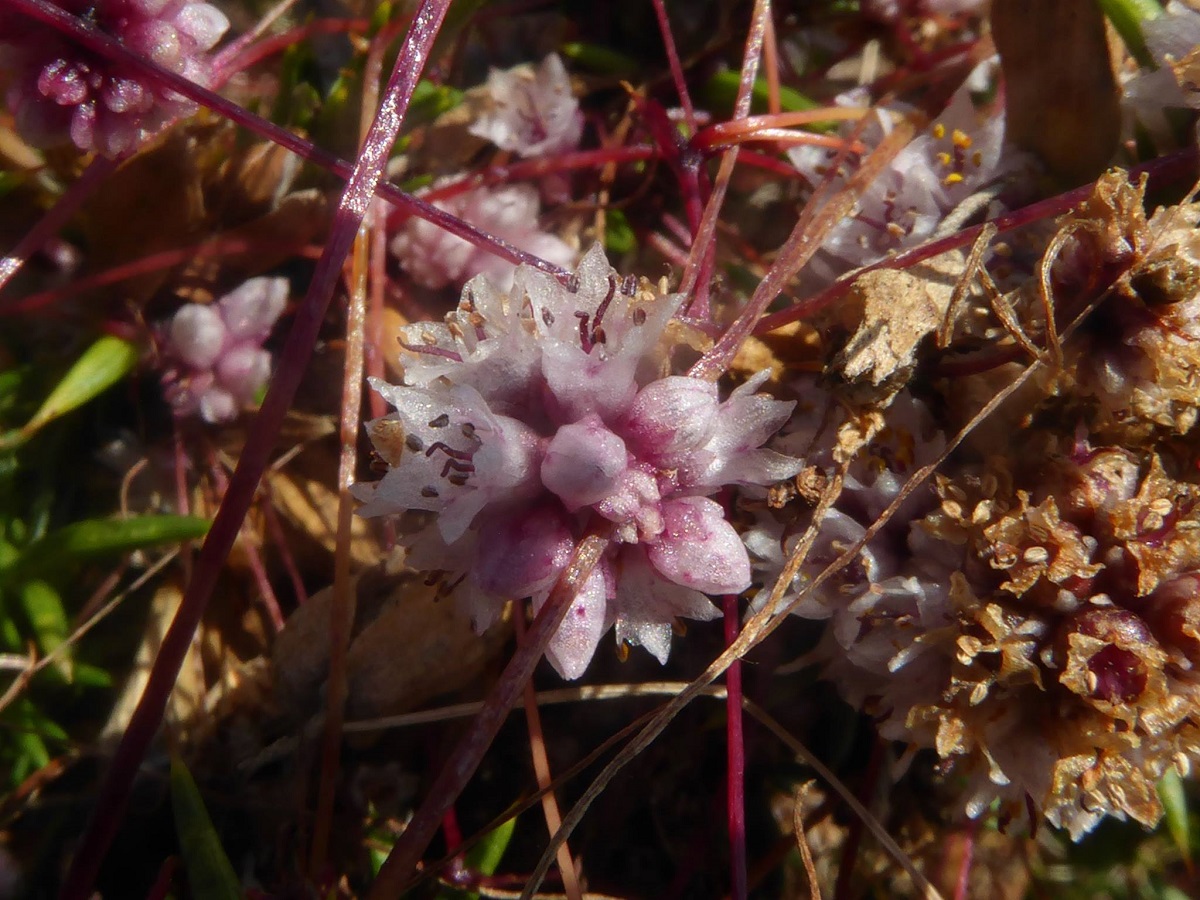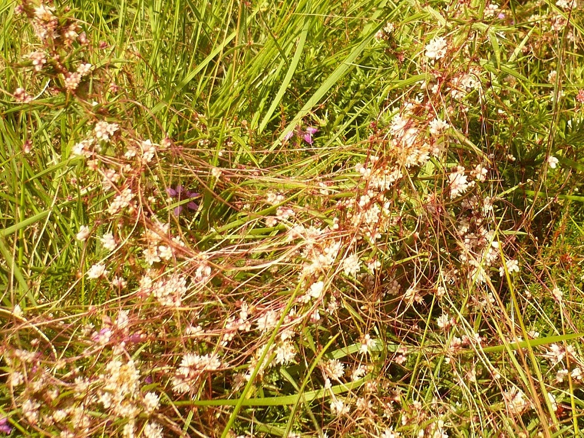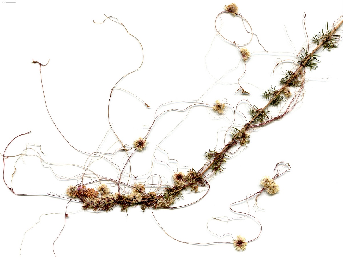 Th Par – 2-6 dm – Tiges rougeâtres volubiles fines, feuilles réduites – Fleurs de Ø 3-4 mm en tête dense, corolle campanulée à 5 lobes blanc rosé aigus étalés – Capsule à 2 styles longs