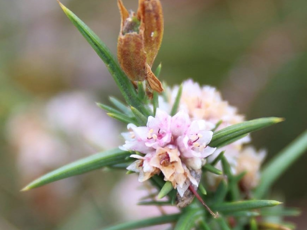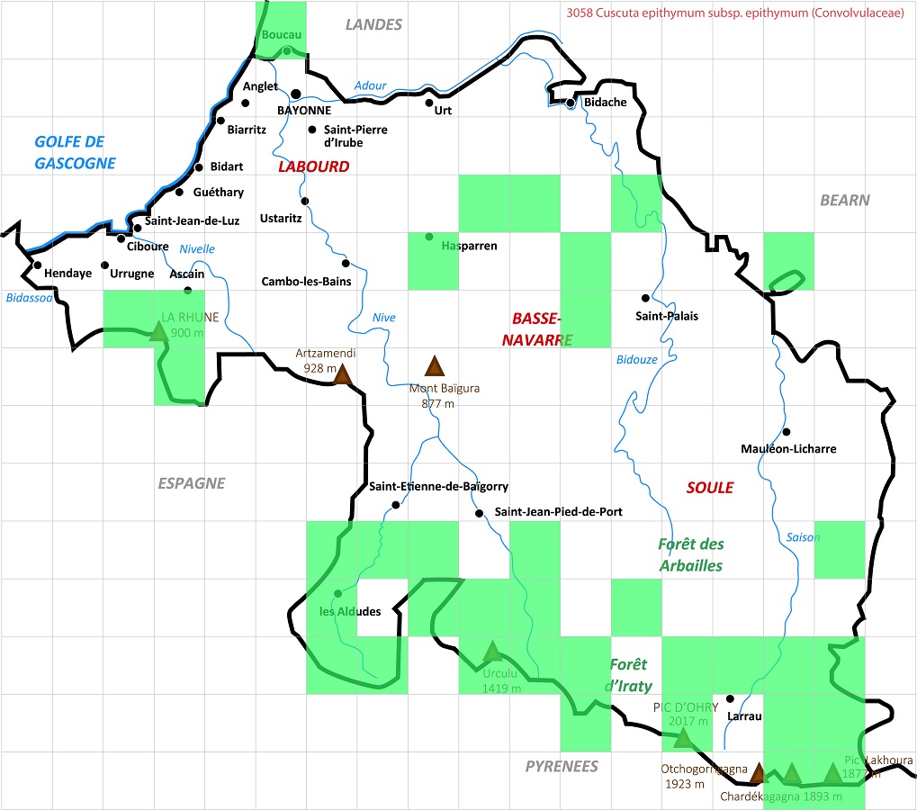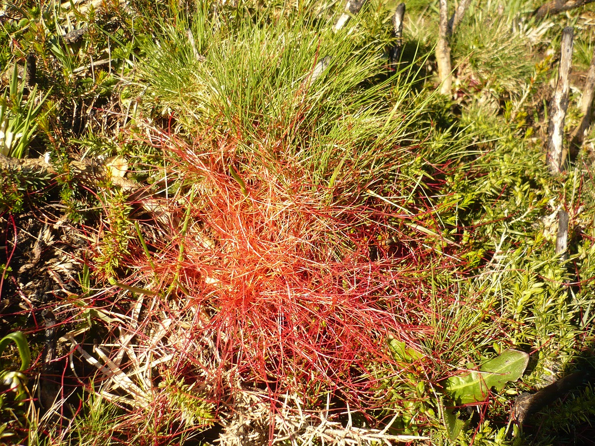 Th Par – 2-6 dm – Tiges rougeâtres volubiles fines, feuilles réduites – Fleurs de Ø 3-4 mm en tête dense, corolle campanulée à 5 lobes blanc rosé aigus étalés – Capsule à 2 styles longs