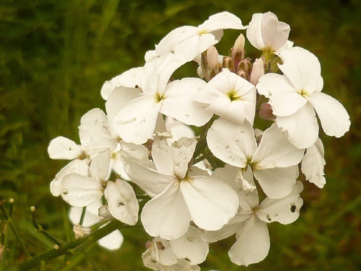 Hc – 5-10 dm – Feuilles pétiolées, lancéolées-dentées, ciliées – Assez grandes fleurs parfumées à 4 pétales toujours blancs, stigmate à lobes obtus – Siliques longues, écartées