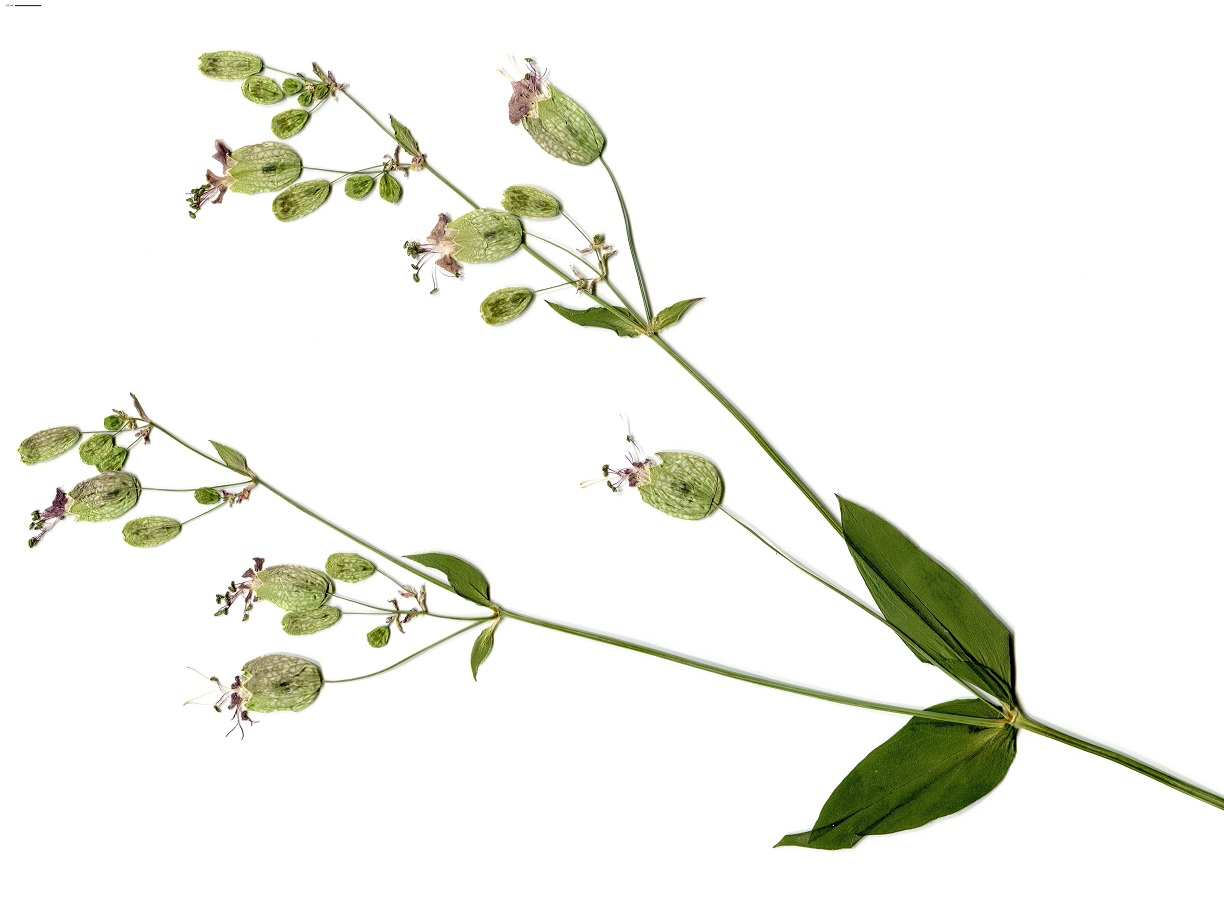 Hc – 3-6 dm – Feuilles larges opposées, lancéolées, ± fermes – 8-15 Fleurs, 5 pétales blancs/rosés bifides, gros calice enflé (l = 10-17 mm), bractéoles scarieuses – Capsule à dents dressées