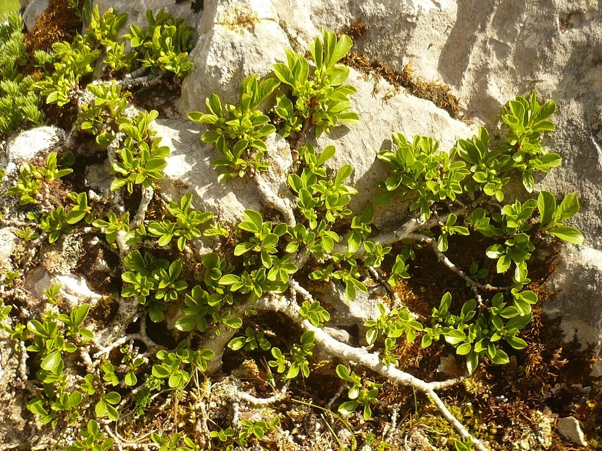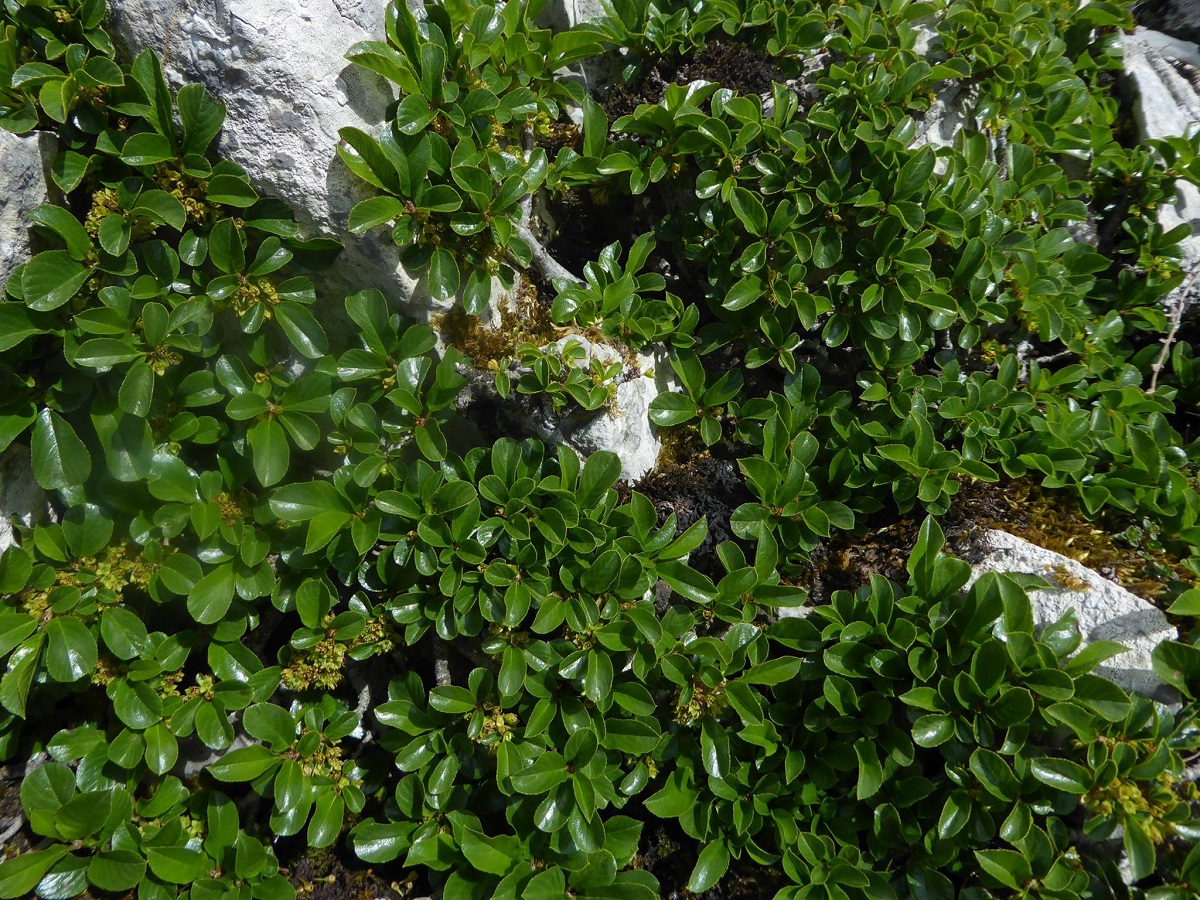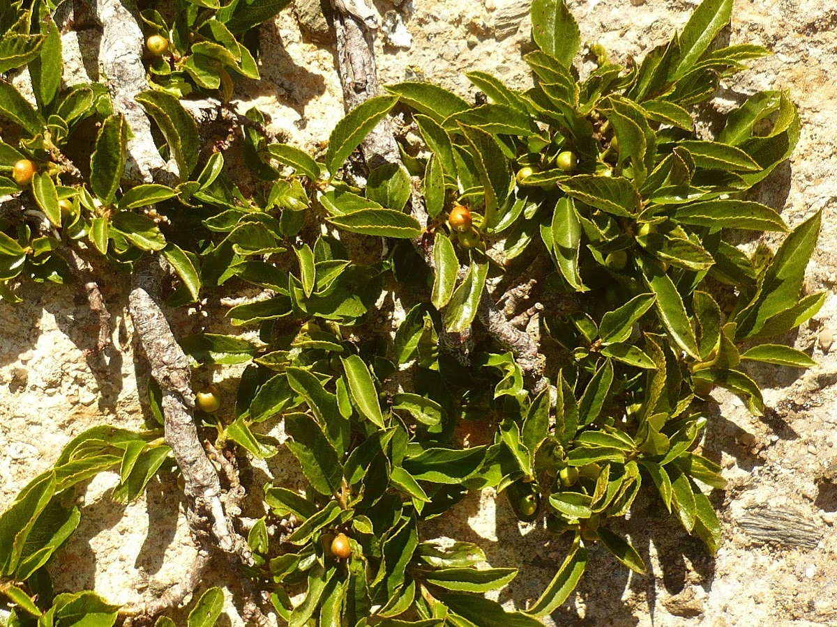 Ch – 2-5 dm – Couché, tortueux, feuilles L de 1-3 cm ovales ± dentées, apiculées, à nervures arquées – Fleurs verdâtres, calice à 4 lobes > au tube – Fruit de Ø 6-8 mm rouge → noir