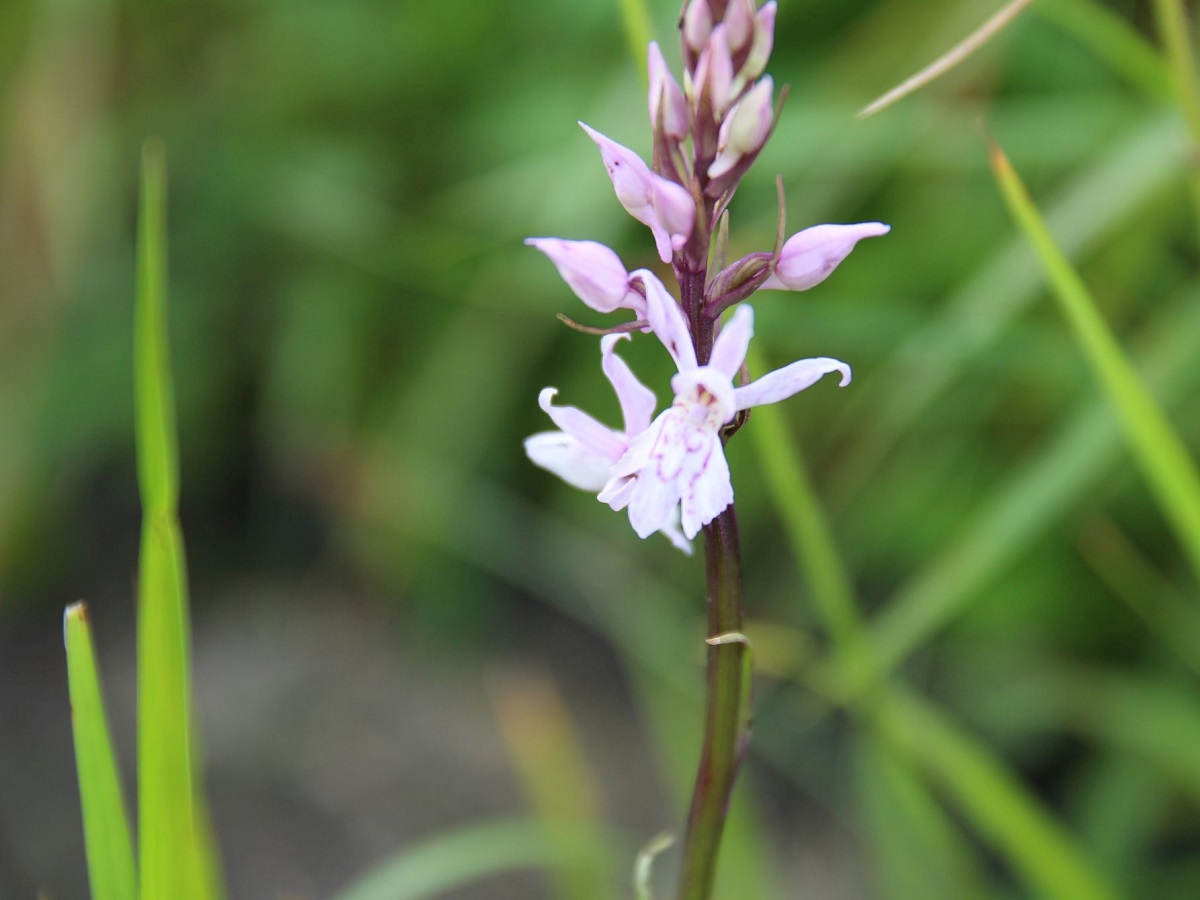 G à tubercule – 2-5 dm – Feuilles basales lancéolées maculées – Fleurs rose pâle, à labelle de 7-11 mm orné, étalé à 3 lobes à sinus profonds, à tépales en casque, à éperon assez fin