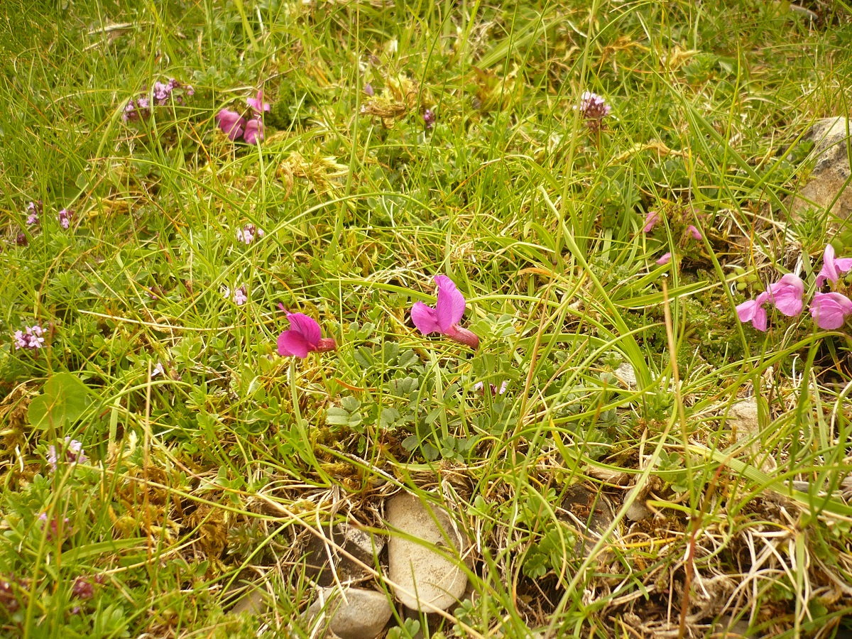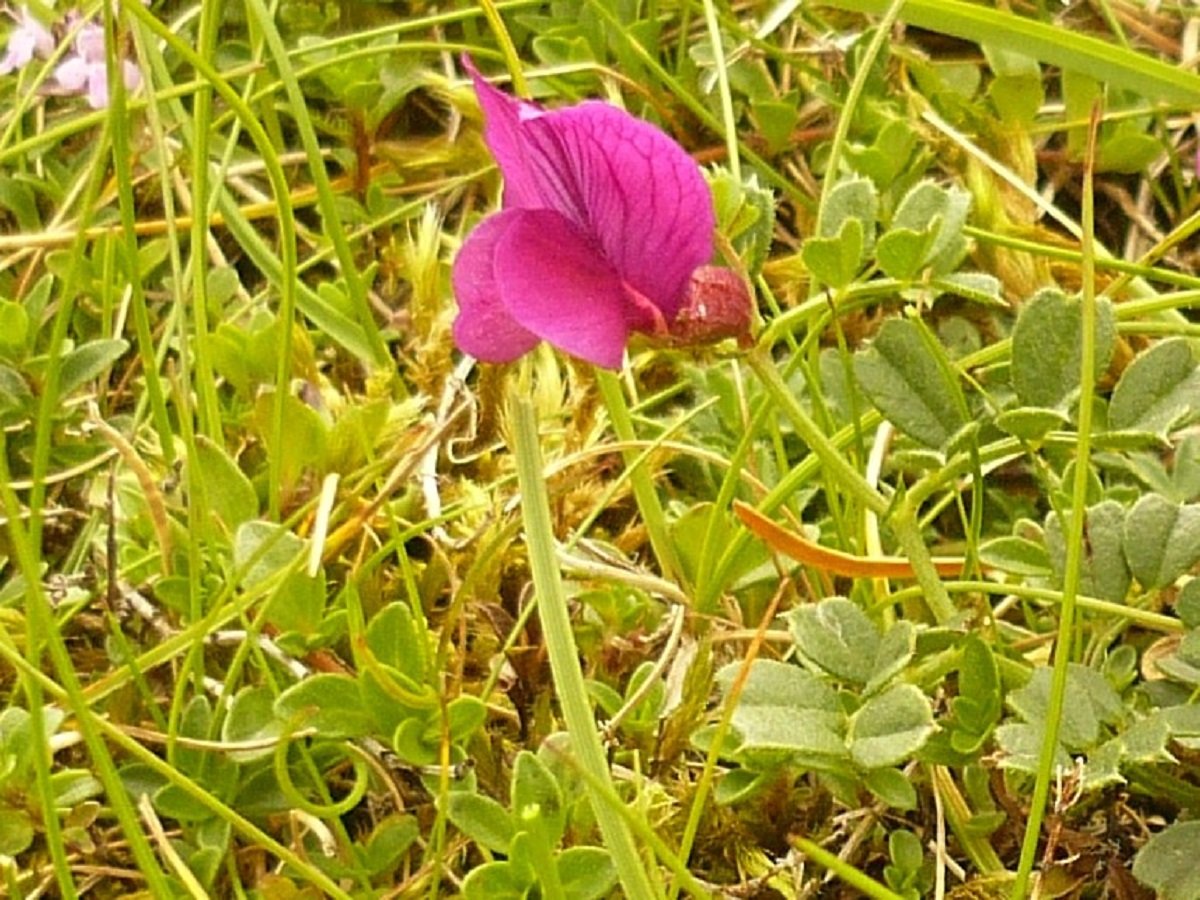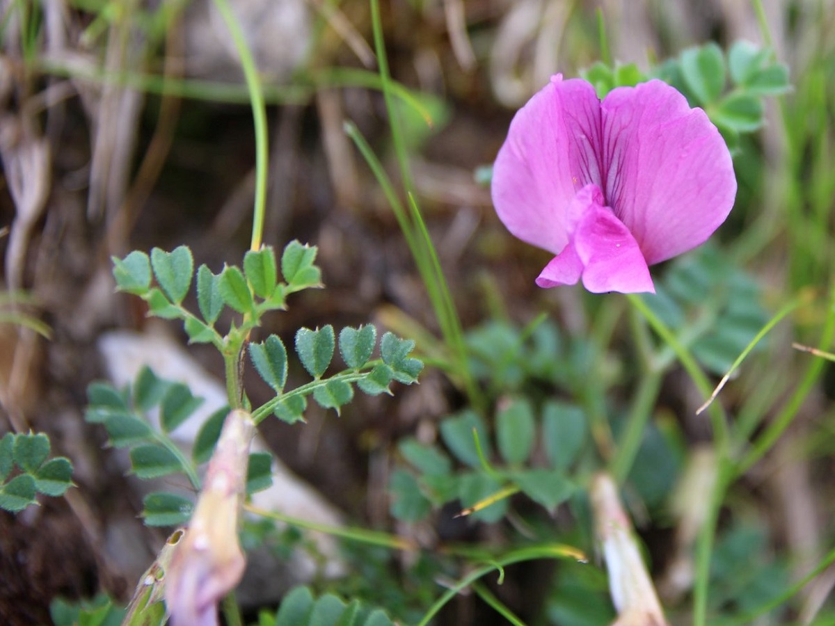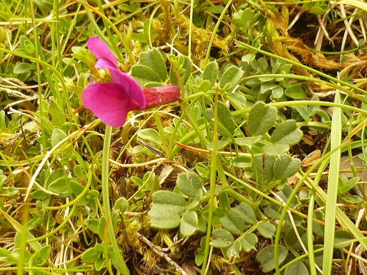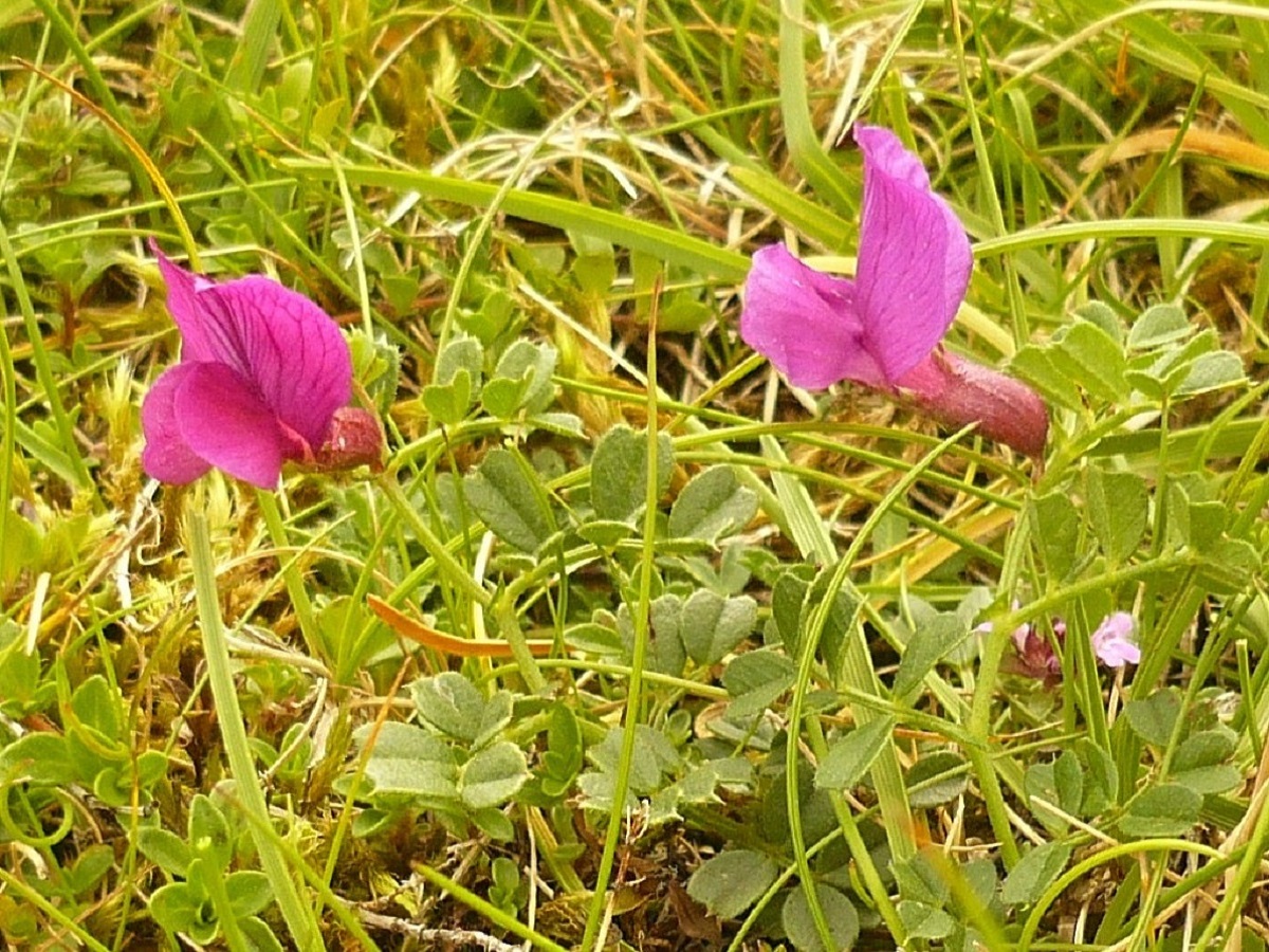 G à drageons – 0,5-2,5 dm – Feuilles pennées à 4-8(12) folioles L de 4-14 mm obovales, les > à vrille simple – Grande fleur solitaire L de 2-2,5 cm violet pourpre, à étendard > à la carène