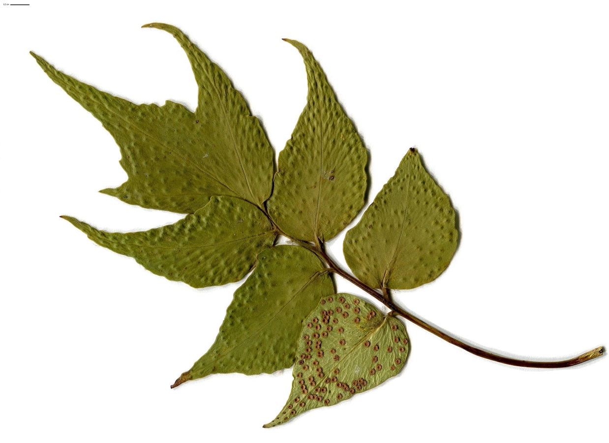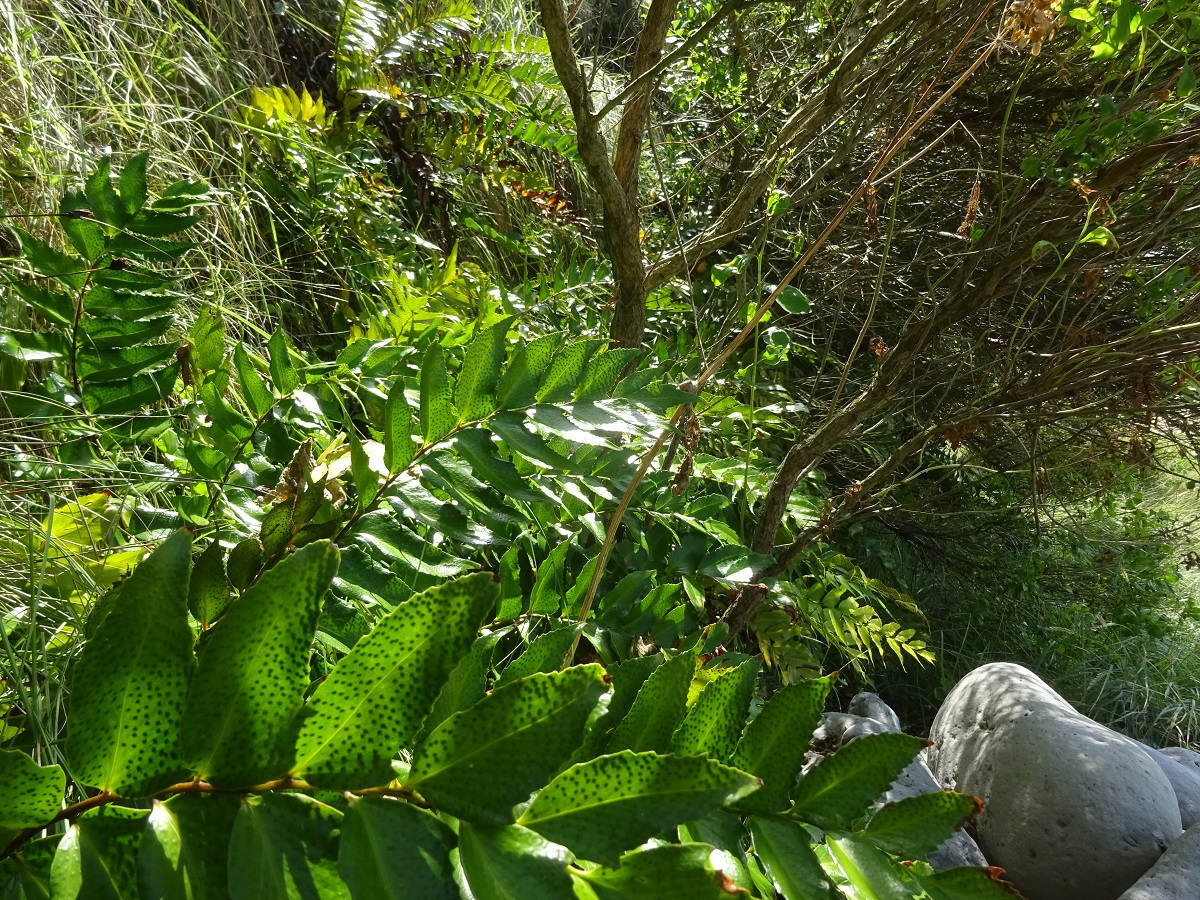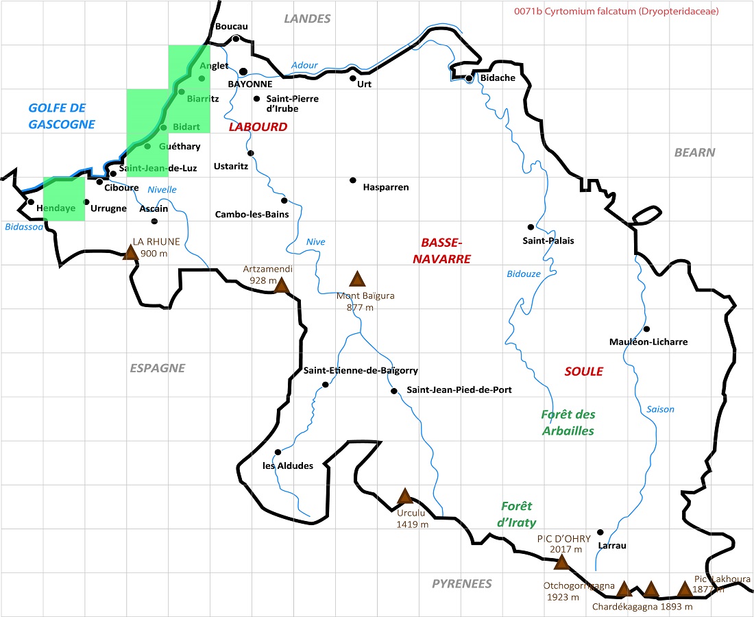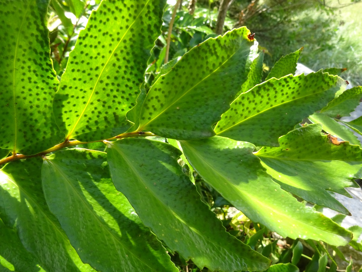 Hc – 3-6 dm – Fougère à limbe coriace luisant, à pennes ± larges, falciformes effilées, pétiolulées, pétiole à écailles rousses – Sores ronds bruns disséminés à la face inférieure