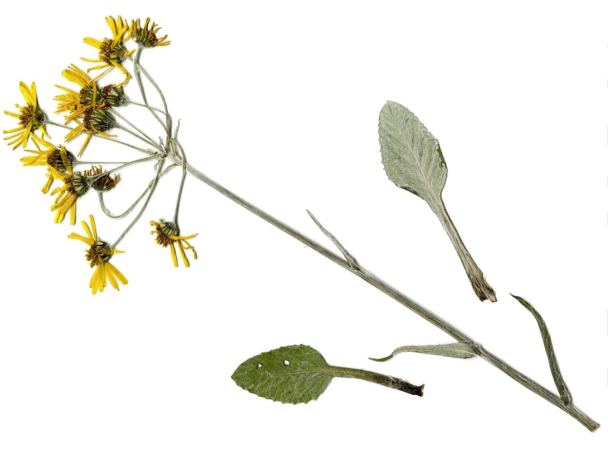 Hc – 4-8 dm – Feuilles aranéeuses spatulées pétiolées, les > lancéolées linéaires – Capitules de Ø 1,5-2,5 cm en corymbe lâche, à fleurons et 13 (ou 0) hémiligules jaunes, involucre laineux