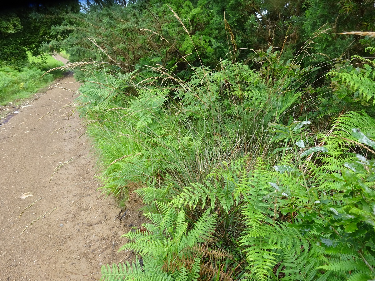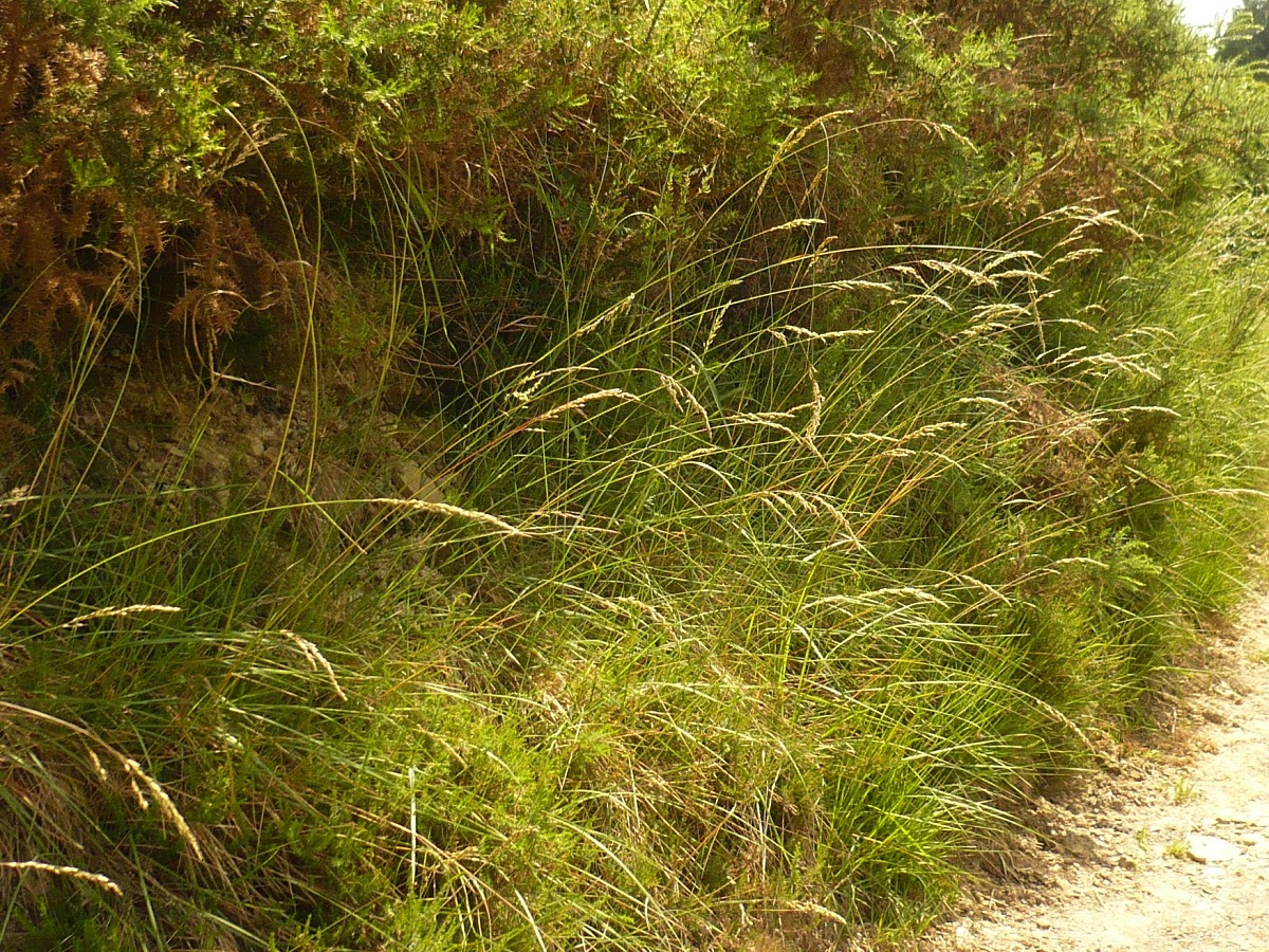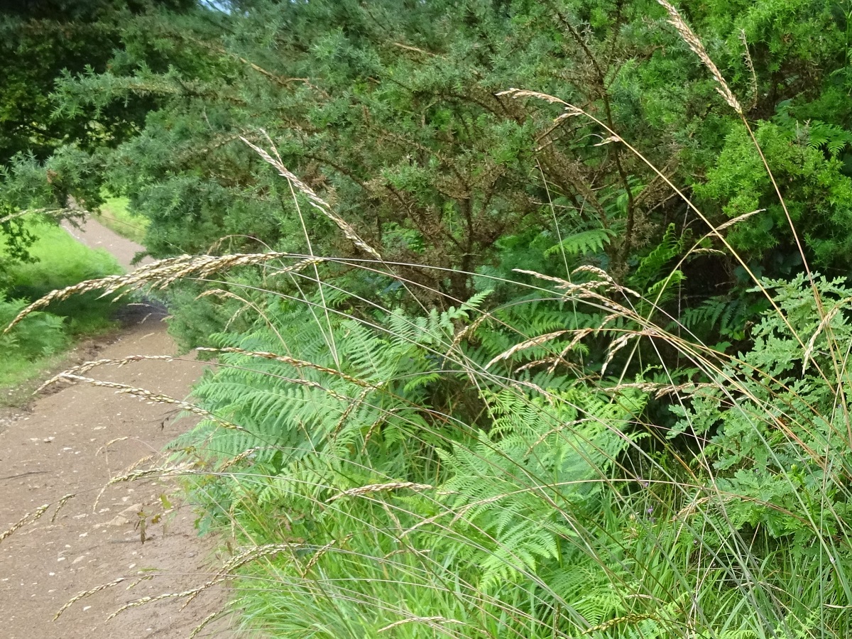 Hc – 6-12 dm – En touffe, feuilles, longues effilées raides, et gaines velues – Longue panicule de 8-20 cm contractée ± violacée, lemme < velue, bidentée, arête coudée